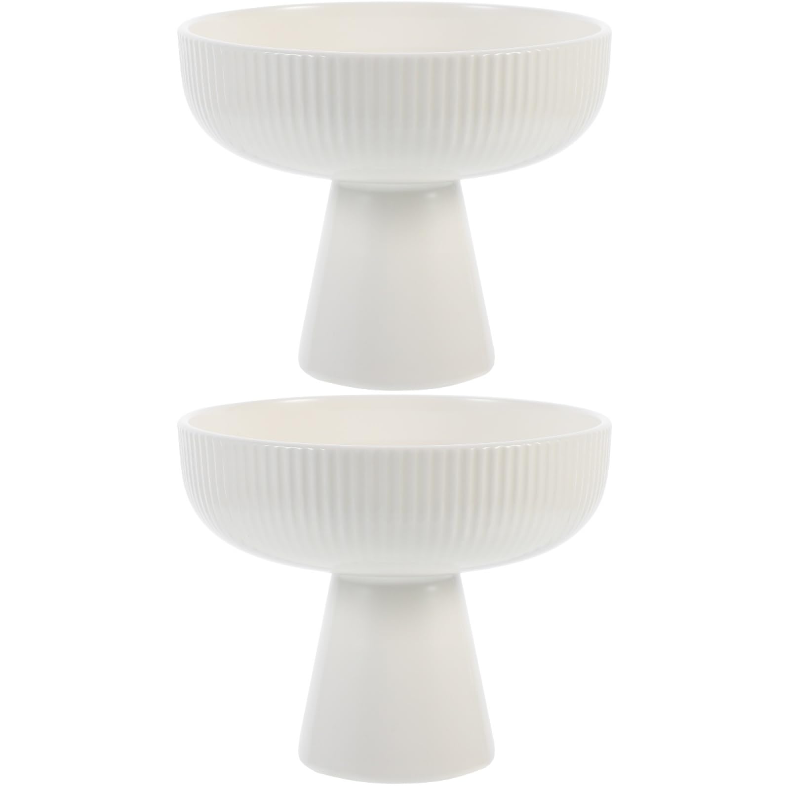 Amosfun 2Pcs Ceramic Ice Cream Bowls 4.72 Inch Footed White Dessert Cups for Sundae Pudding Fruit and Party Use - Round Ceramic Bowls for Kitchen and|Kitchen & Dining