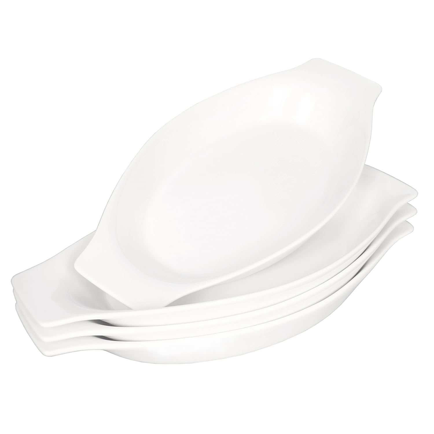 jinsongdafa 5 x 8 Inch Ceramic Oval Au Gratin Baking Dishes 12 OZ, Set of 4 Banana Split Bowls, for 1 or 2 Person Servings, Bakeware with Handle(10.3|Kitchen & Dining