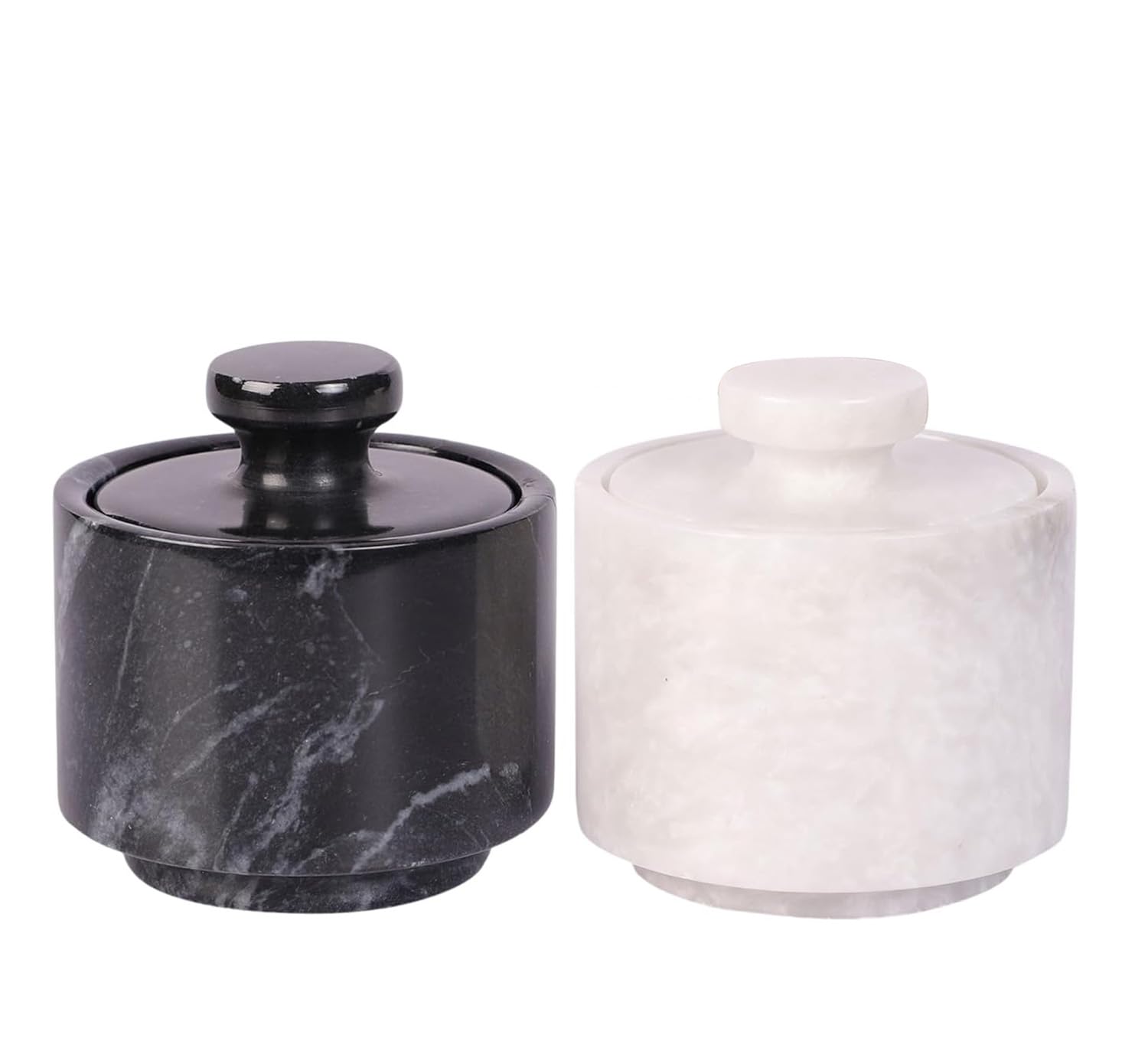 Marble Hives Marble Salt Cellar With Lid- Pack Of 2 Marble Salt And Pepper Bowls- Salt Holder With Lid To Put Salt, Paprika, Pepper, And Spice (White|Kitchen & Dining