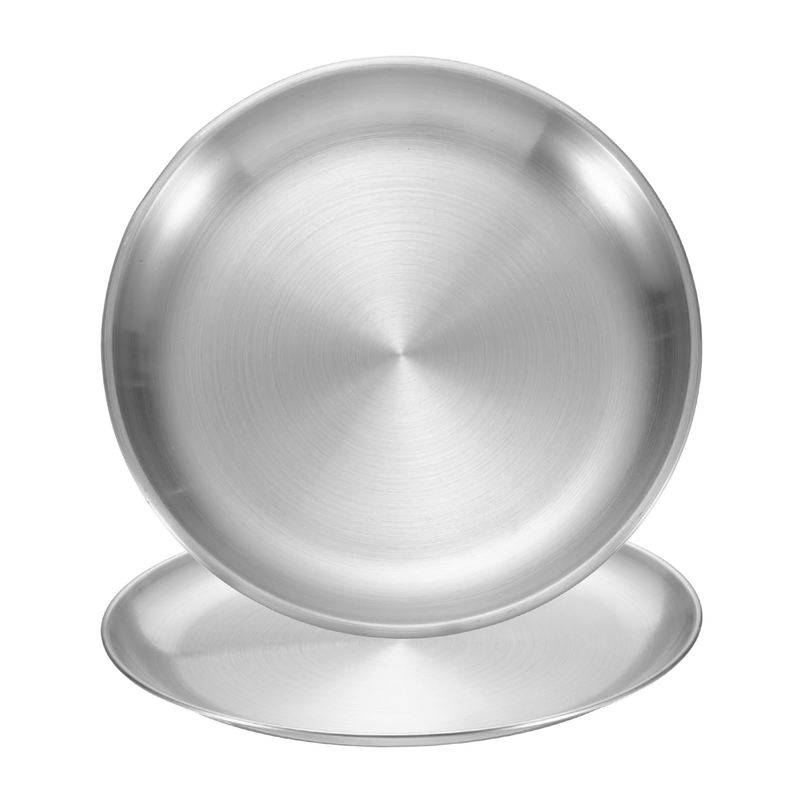 uxcell 2Pcs Stainless Steel Dinner Plates, 9.1" Round Serving Plate Dishes Set Flat Metal Dinner Dishes Plate for Restaurants Kitchen Dessert Salad|Kitchen & Dining