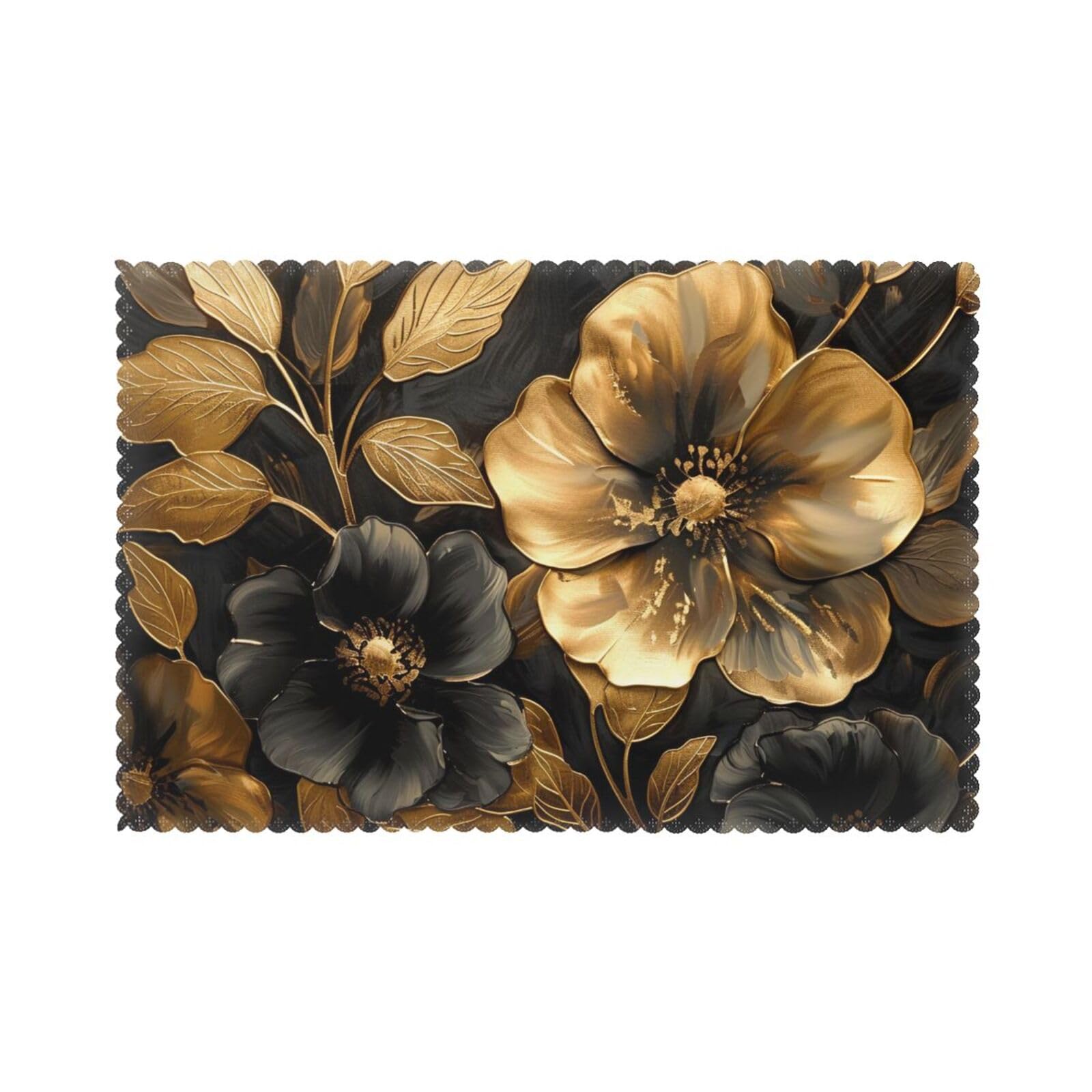 Placemats for Dining Table Set of 6 - Black and Gold Flowers - Table Mats Wipe Clean, Anti Slip Dining Table Place Mats, Suitable for Indoor & Outdoor|Kitchen & Dining