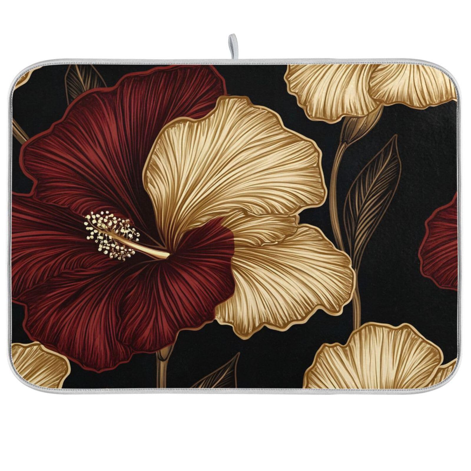 UMIRIKO Flower Brown Red Black Dish Drying Mat Kitchen Drying Pads Tableware Drying Absorption Foldable Kitchen Counter Decoration 16x18in 20860903|Kitchen & Dining