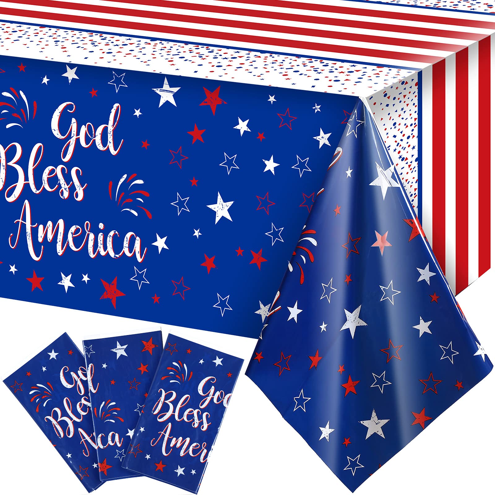 Tatuo 3Pcs Patriotic Tablecloth 4th of July Decorations Red White Blue Star Plastic Disposable Table Cover for USA Flag Independence Day Memorial Day|Kitchen & Dining