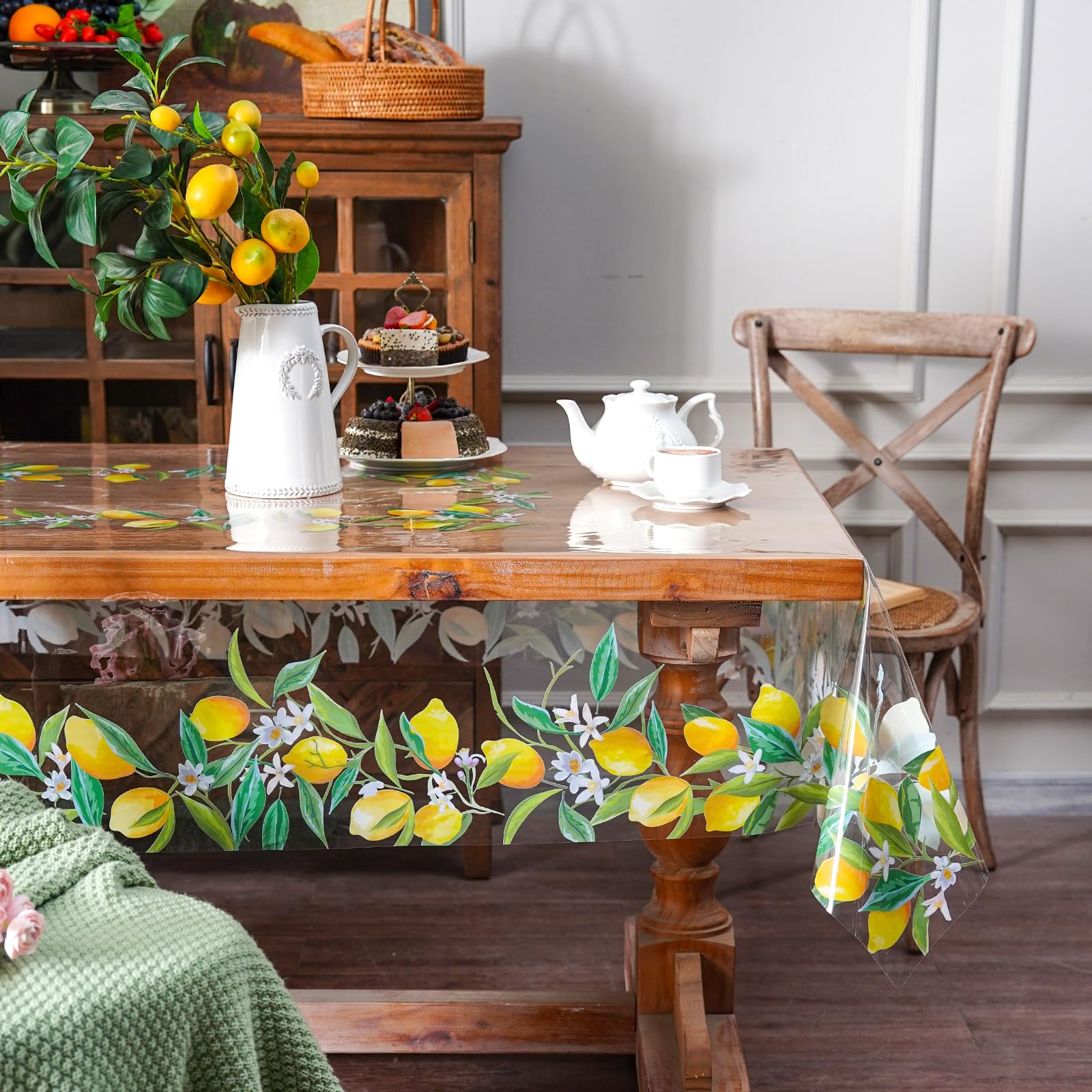 ARTABLE Clear Table Cover Protector Vinyl PVC Rectangle Table Cloth with Floral Print Pattern Oil Proof Wipe-able Plastic Tablecloths for Dining|Kitchen & Dining