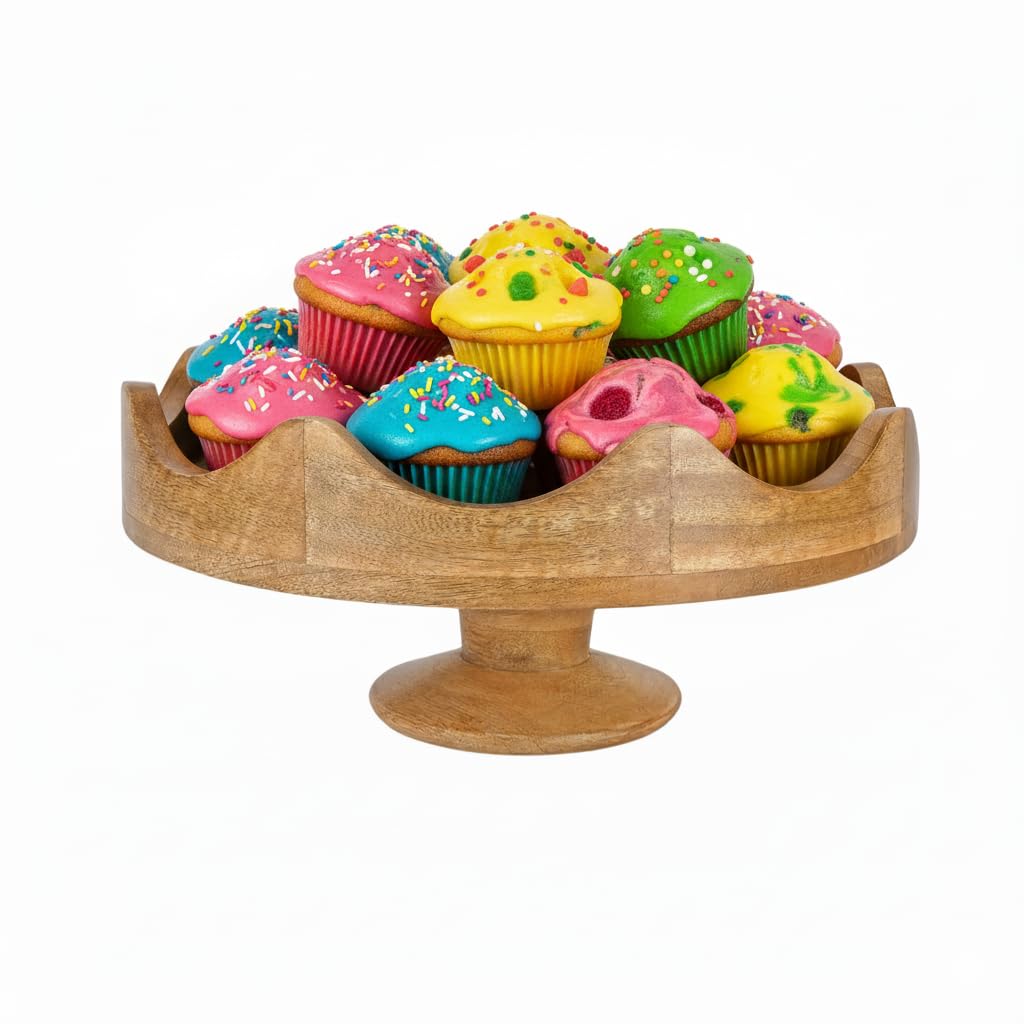 Mela Artisans Mango Wood Footed Fruit Bowl | 12" Scalloped Wooden Pedestal Bowl for Kitchen Counter | Snacks | Breads | Desserts | Multipurpose|Kitchen & Dining