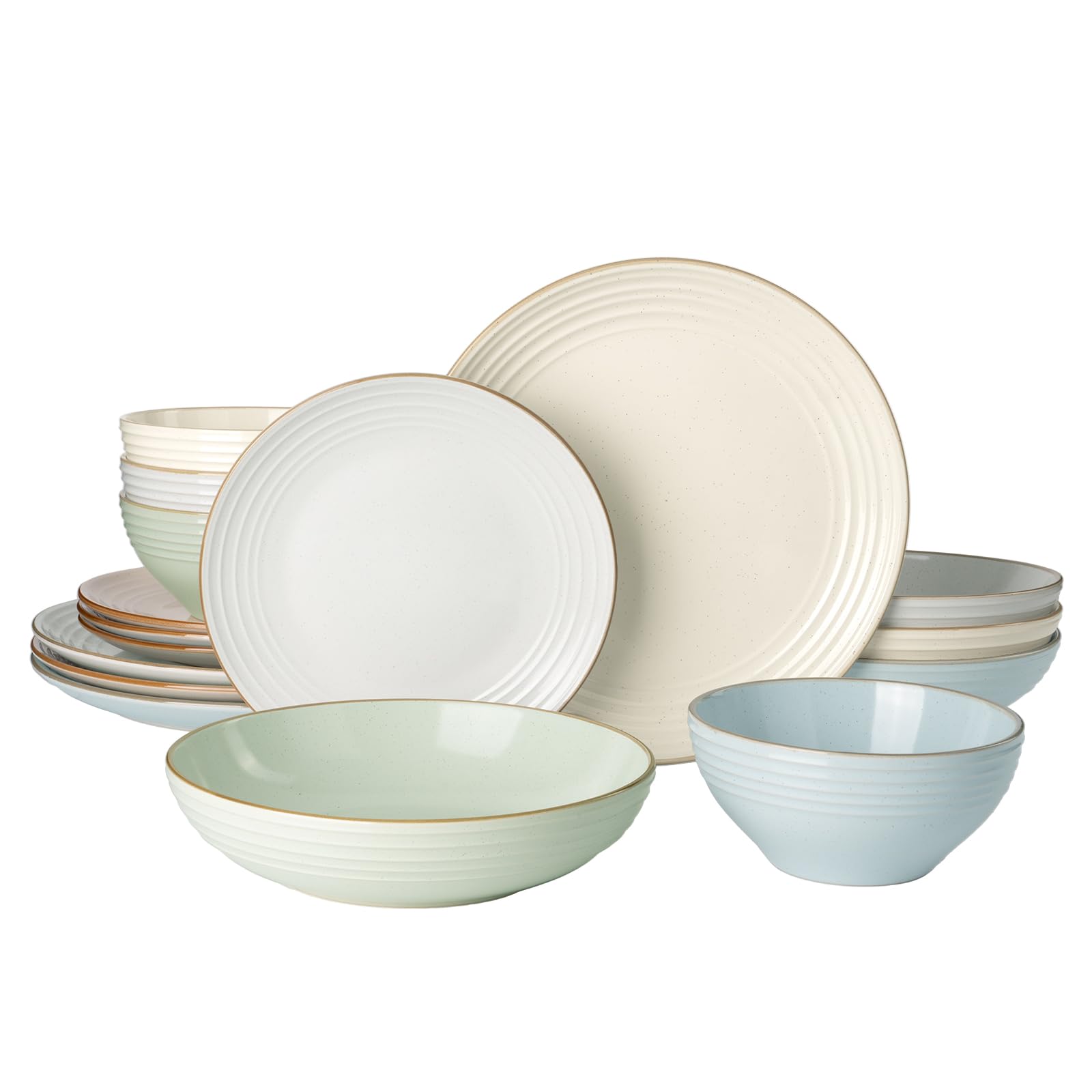 Famiware Jupiter Dinnerware Set with Pasta Bowl, Plates and Double Bowls Dish Sets for 4 (16 Pieces), Microwave and Dishwasher Safe, Chip and Scratch|Kitchen & Dining
