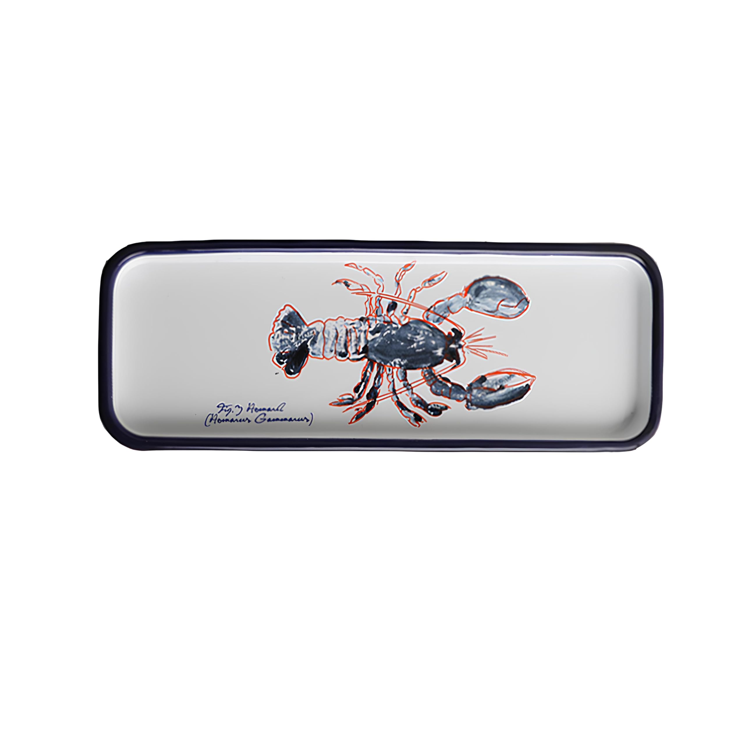 RippleTriple Enamelware Serving Tray, Handcrafted, Versatile Food Display, Fish and Lobster Pattern (White Lobster - Narrow)|Kitchen & Dining