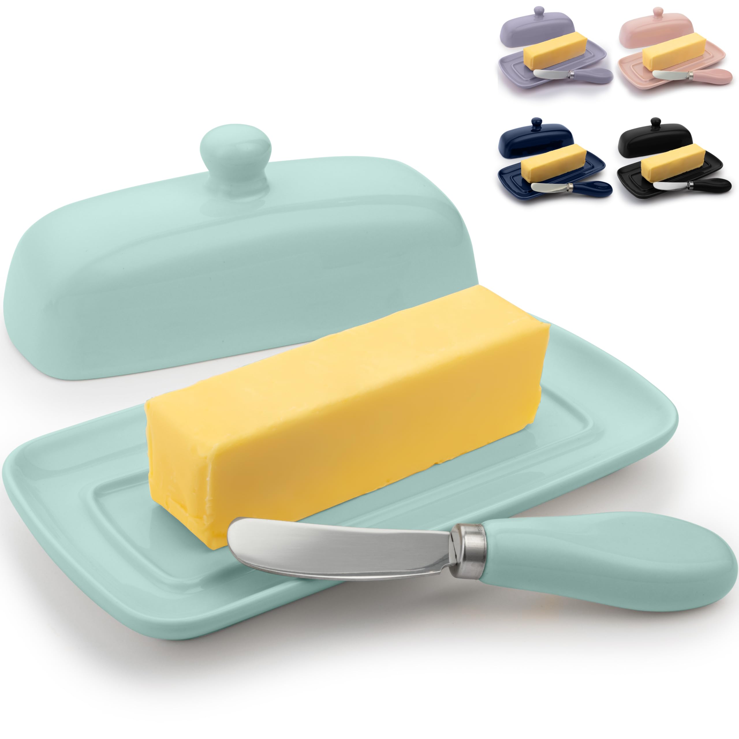 Zulay Butter Dish With Lid For Countertop - Porcelain White, Ceramic Butter Dish with Knob Handle Great for Cooking - Elegant Design Butter Holder -|Kitchen & Dining