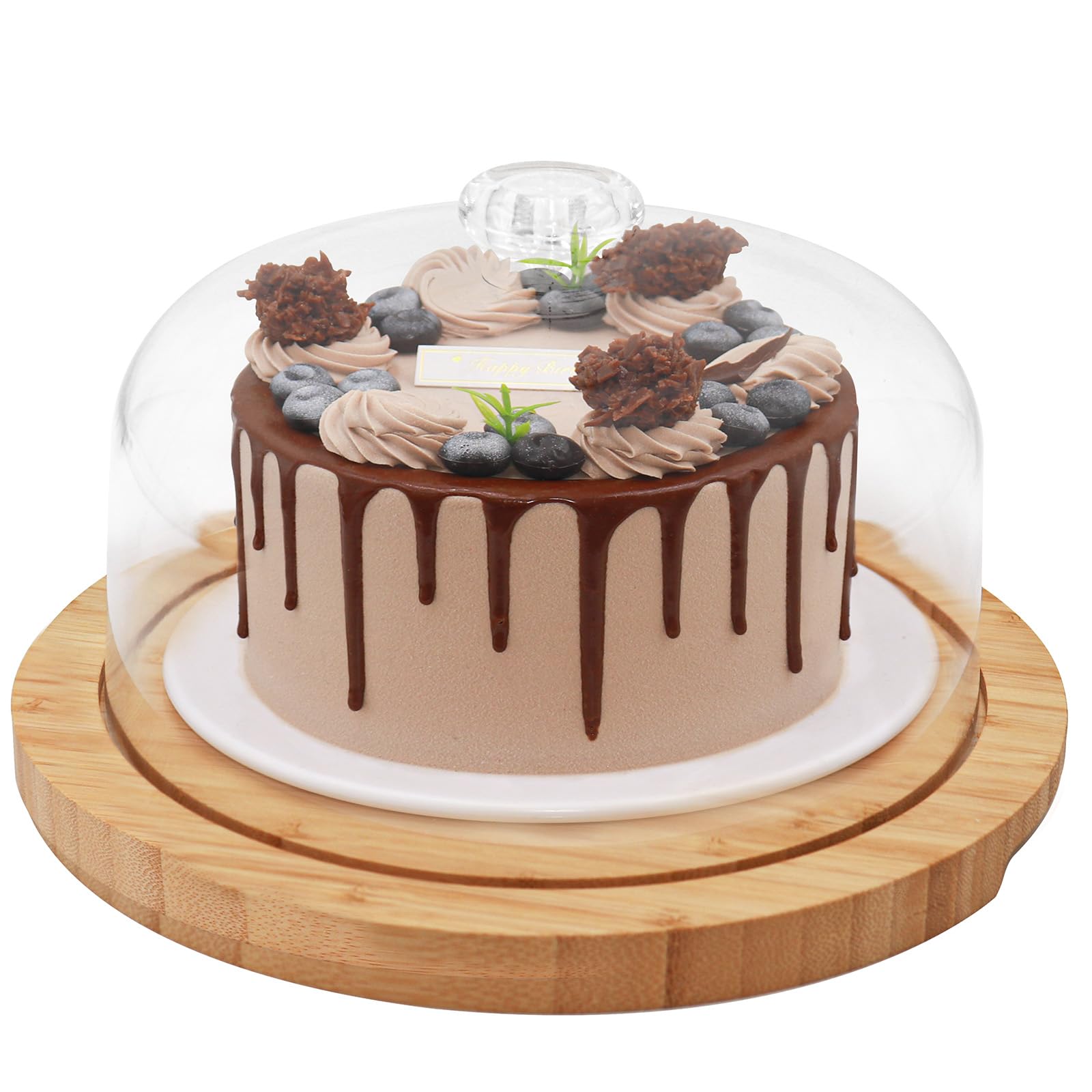 Vacream Bamboo Cake Stand & Charcuterie Board with Lid - Large Serving Acrylic Platter for Party Dessert Table Display, Decorative Server Tray for|Kitchen & Dining