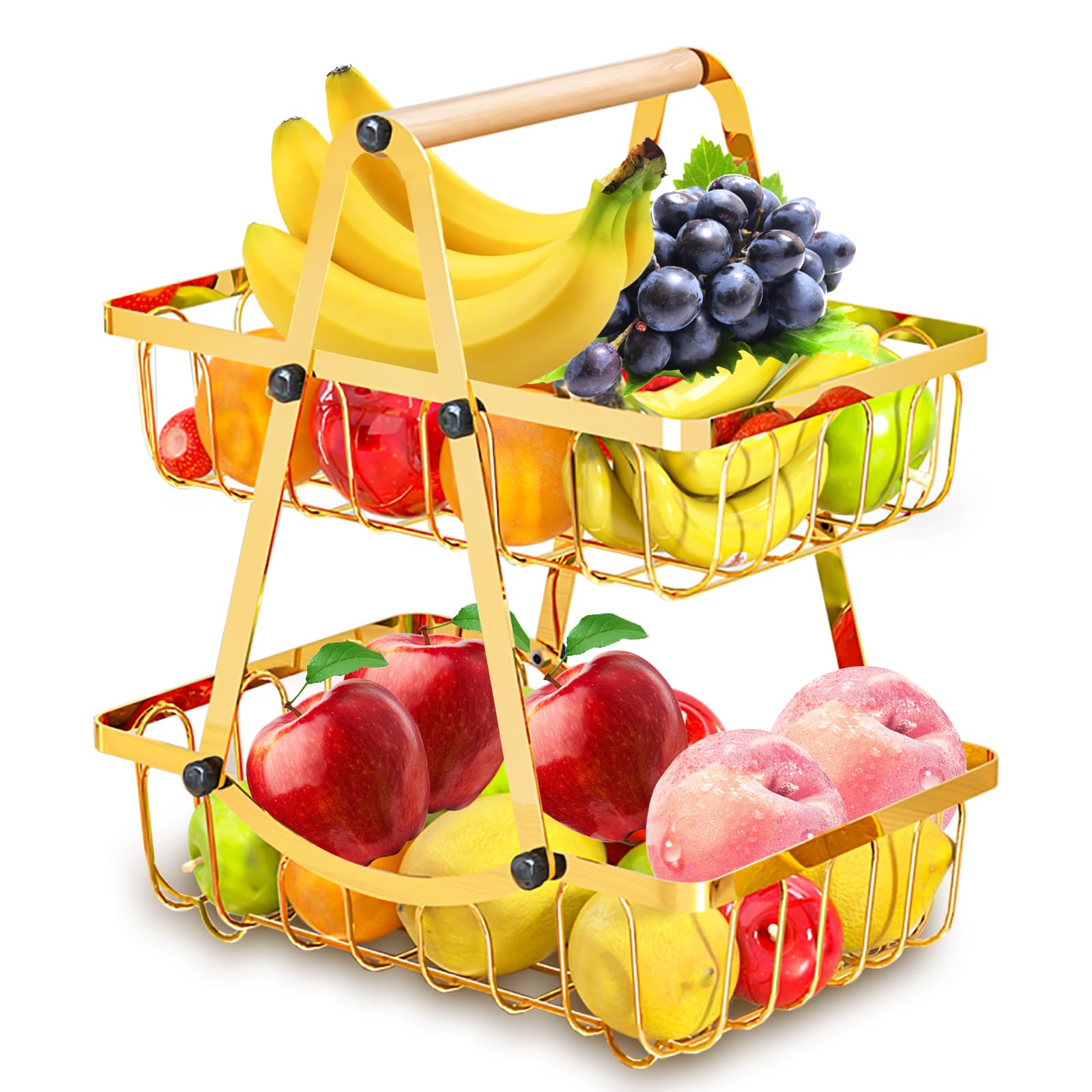 ZEROLUXE 2 Tier Fruit Basket, Detachable Fruit and Vegetable Storage Stand, Metal Fruit Bowl for Kitchen Counter, Fruits Holder Vegetable Basket with|Kitchen & Dining