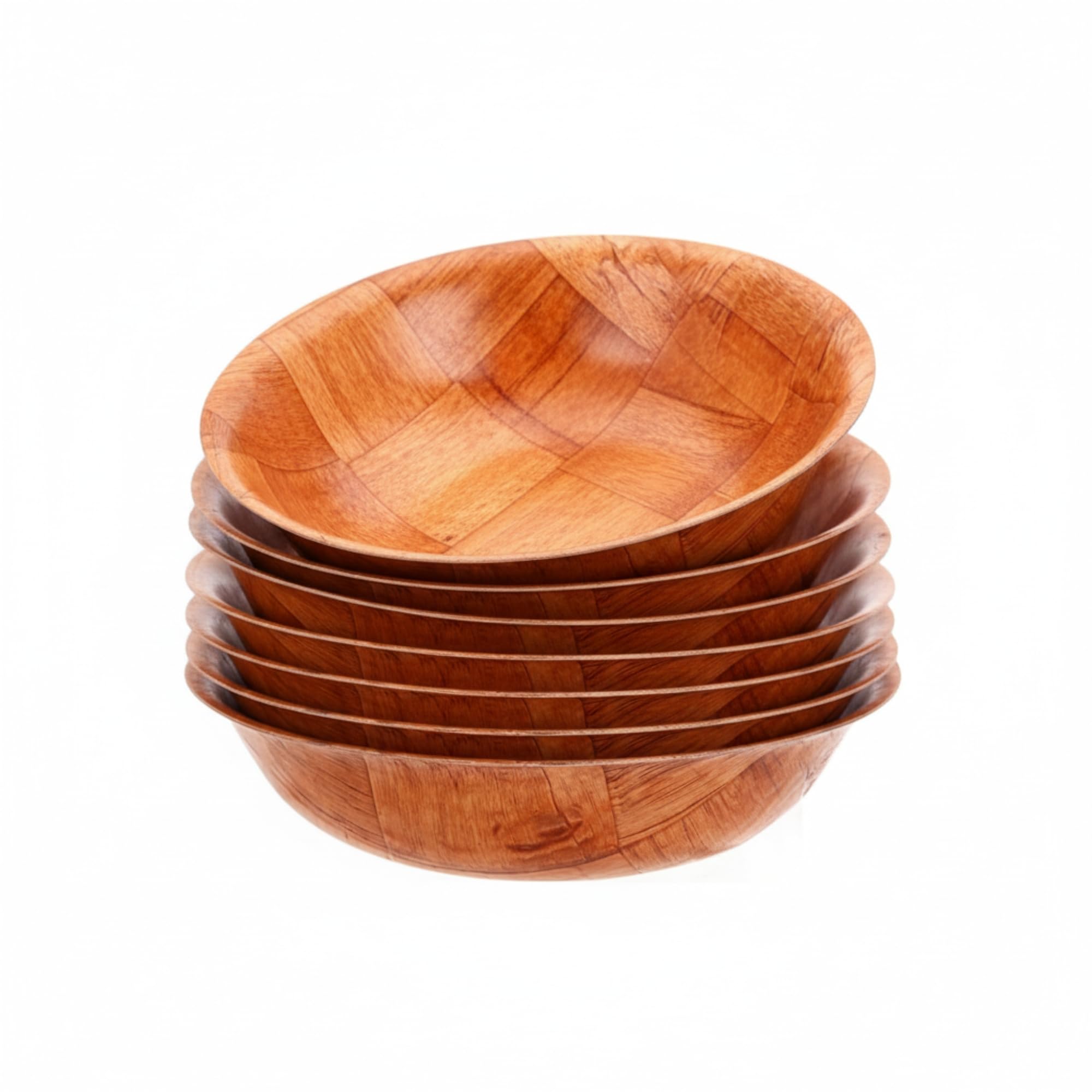 Fonteme 12-inch Wooden Serving Bowl, Set Of 6 | Round | Stackable | EZ To Wash | Great For Salads, Fruits, Snacks, And More [6PK]|Kitchen & Dining