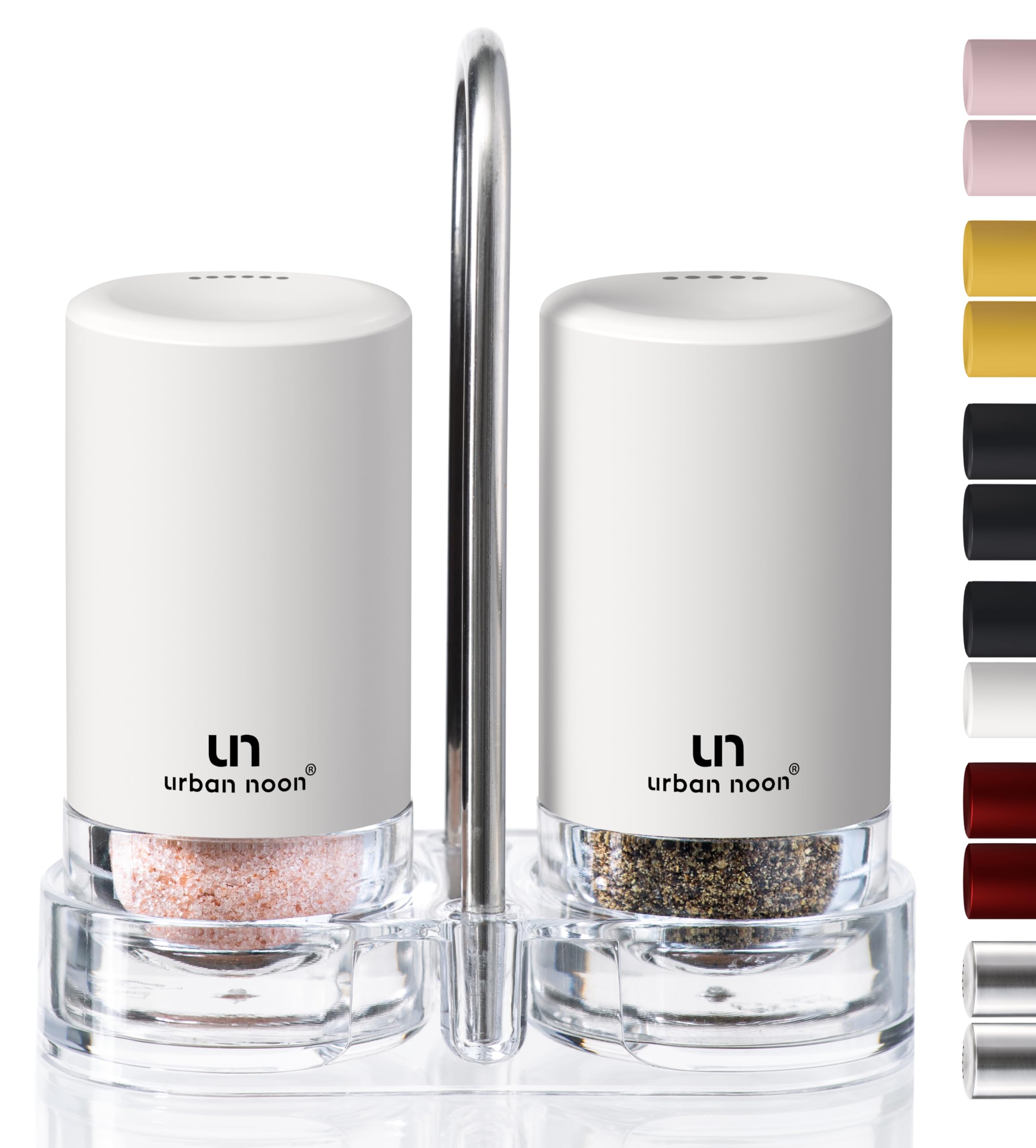 White Salt and Pepper Shakers with Holder - Elegant Stainless Steel Salt Shaker and Pepper Shaker Set with Acrylic Holder for Kitchen Counter or|Kitchen & Dining