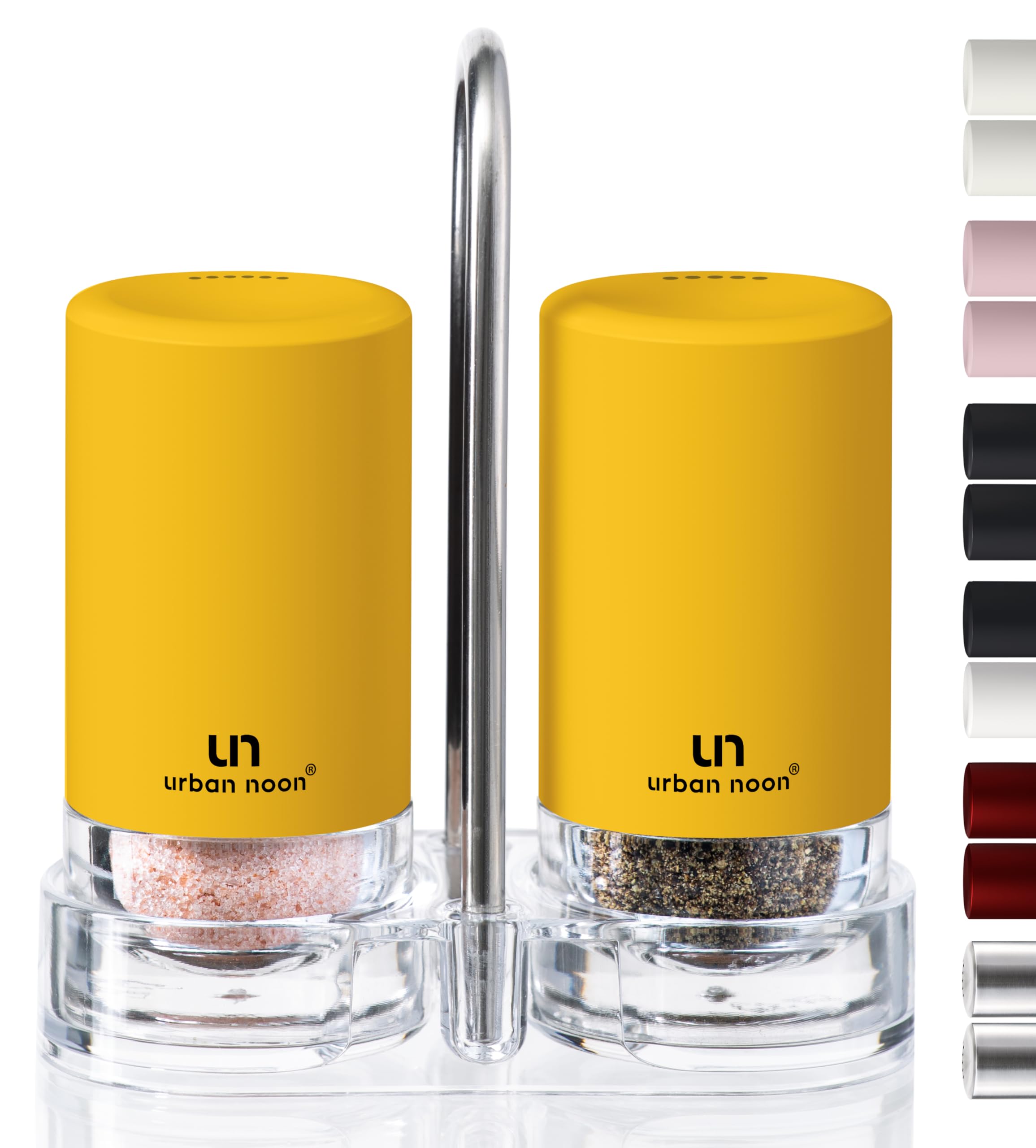 Yellow Salt and Pepper Shakers with Holder - Elegant Stainless Steel Salt Shaker and Pepper Shaker Set with Acrylic Holder for Kitchen Counter or|Kitchen & Dining