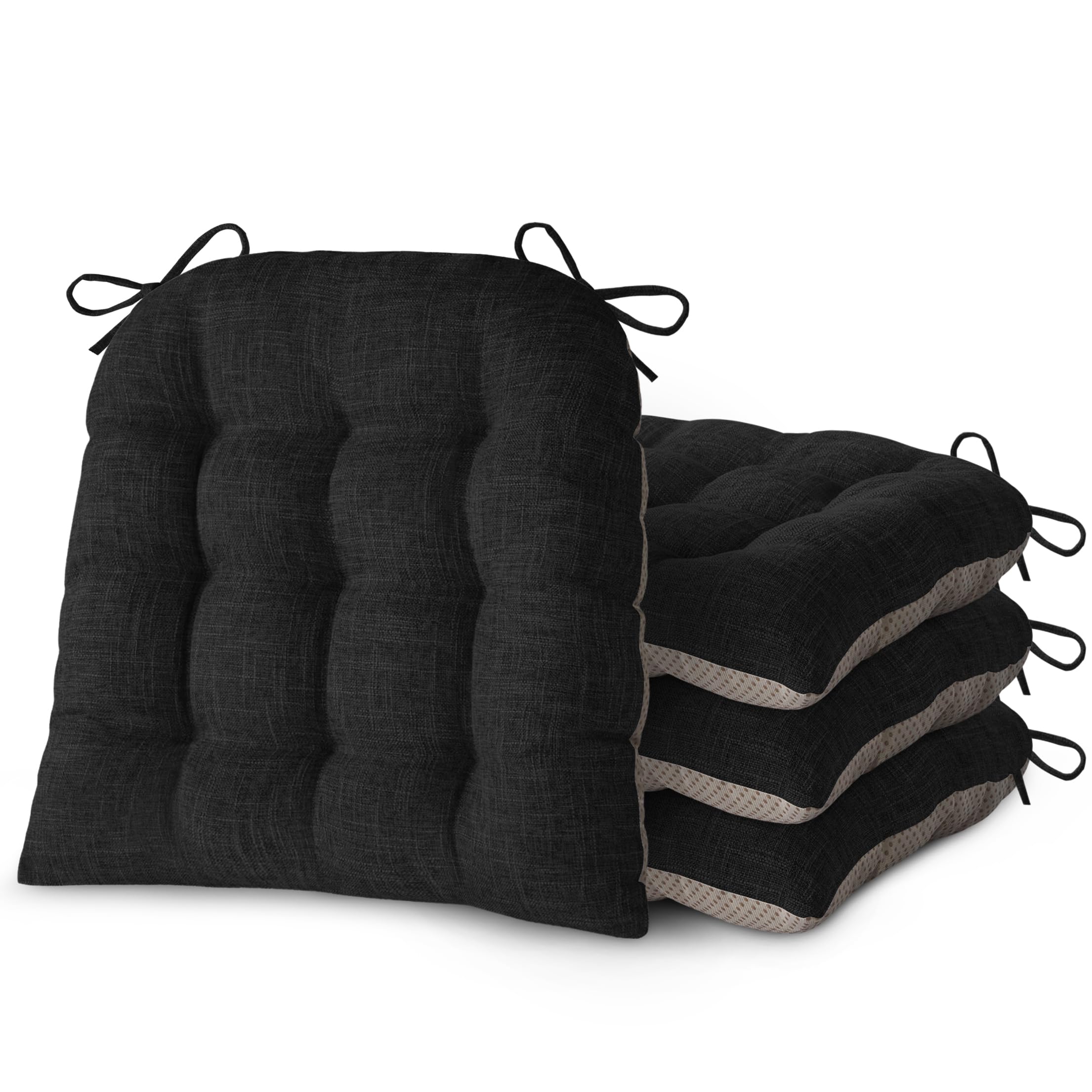 FlyGulls Chair Cushions for Dining Chairs Set of 4 Durable D-Shaped Seat Cushions with Non-Slip Backing Secure Ties Thick Cozy Seat Pad for Kitchen|Kitchen & Dining