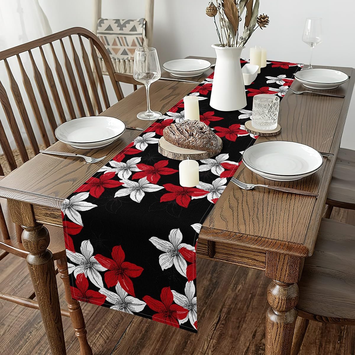 jejeloiu Flower Floral Seasonal 13" x 72" Black and Red Table Runner Ultra Soft Boho Floral Home Decor for Living Room Dresser Runners Romantic Floral|Kitchen & Dining