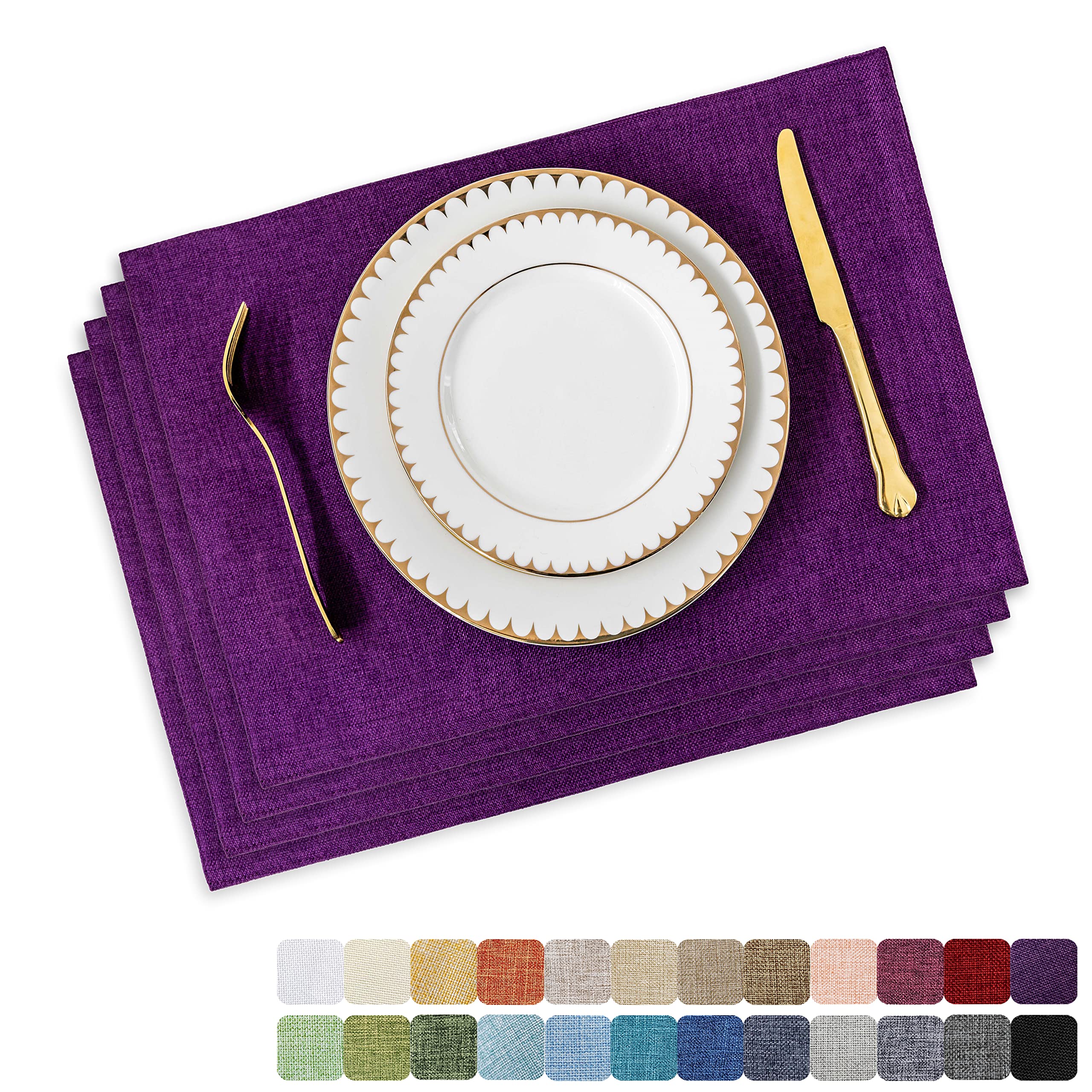 Home Brilliant Cloth Placemats Set of 4 Heat Resistant Dining Table Place Mats for Kitchen Table, 13 x 19 inches, Purple|Kitchen & Dining