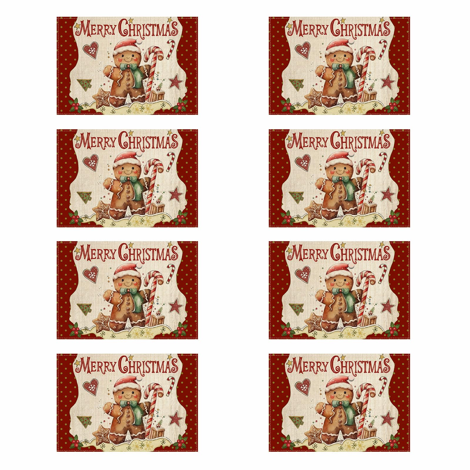 XCHI Merry Christmas Gingerbread Man Winter Xmas Placemats Set of 8 Table Mats for Party Home Kitchen Dining Table Decorations 12x18 Inch|Kitchen & Dining