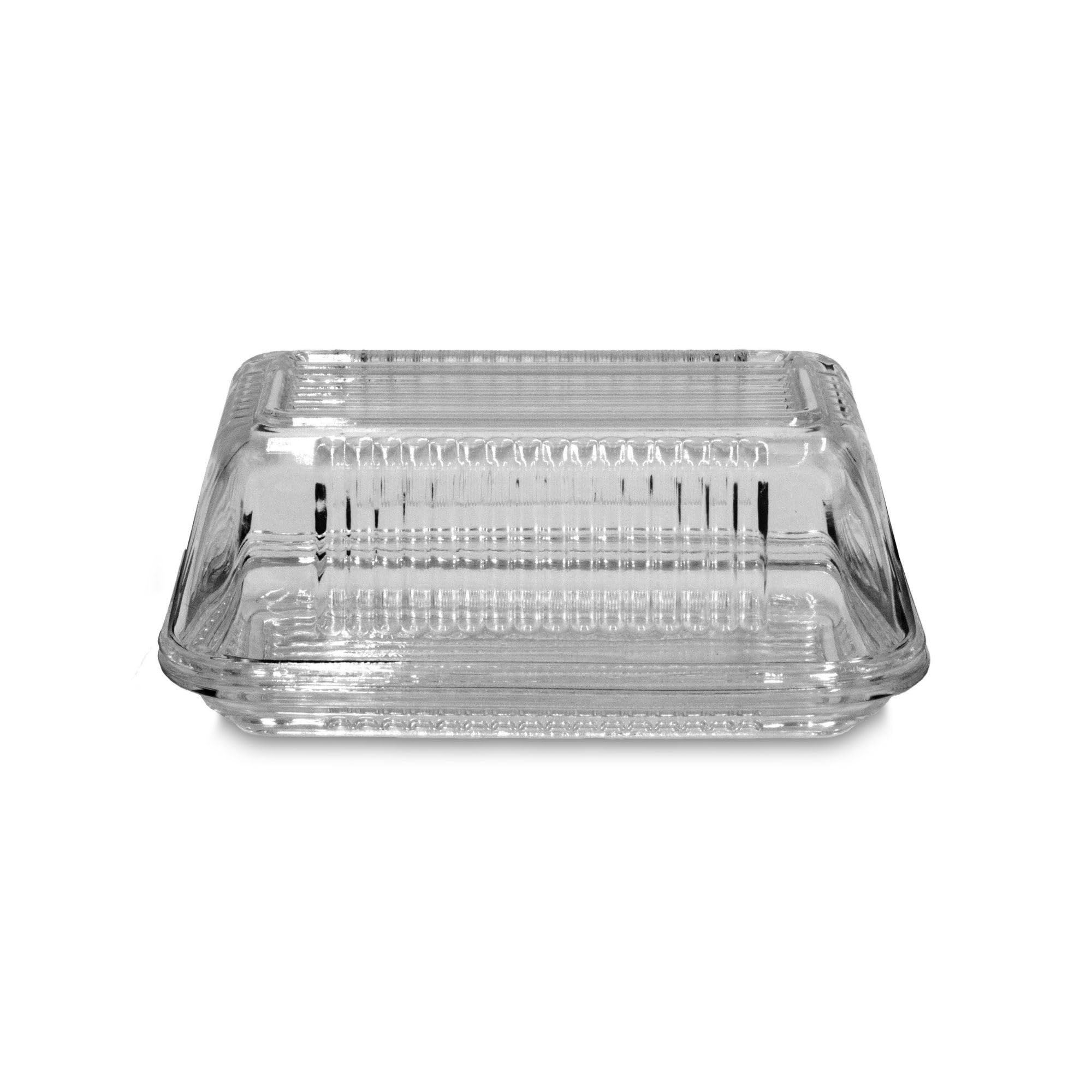 KB KITCHEN BASICS Glass Butter Dish - 6.7" Clear Butter Keeper, Durable Glass for Serving & Storage, Dishwasher Safe Butter Tray for Kitchen|Kitchen & Dining