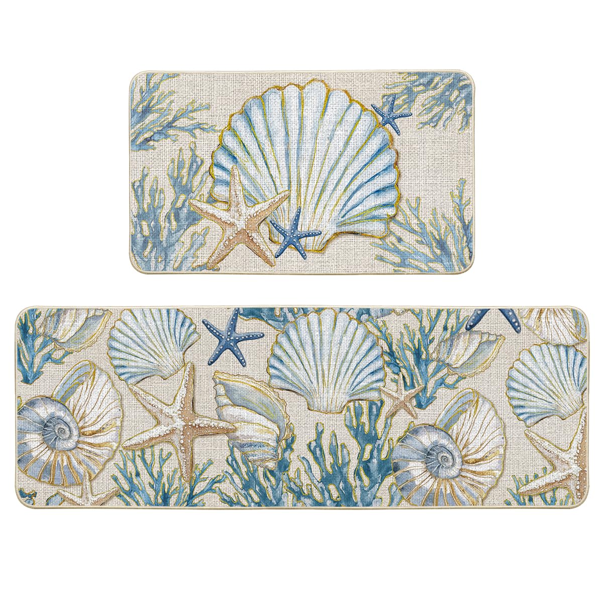 Artoid Mode Sea Shell Starfish Coral Whelks Summer Kitchen Mats Set of 2, Ocean Seasonal Sports Home Decor Low-Profile Kitchen Rugs for Floor - 17x29|Kitchen & Dining