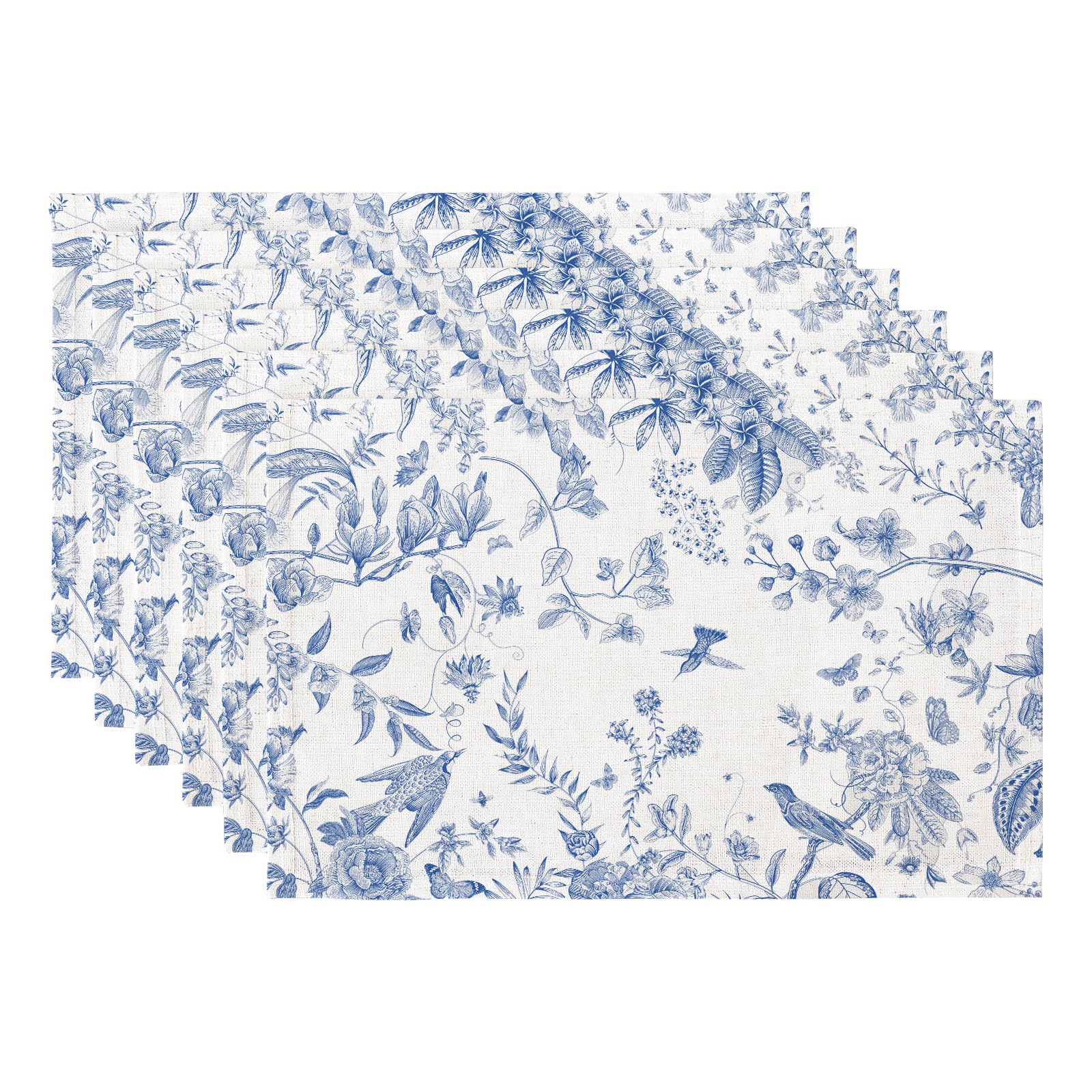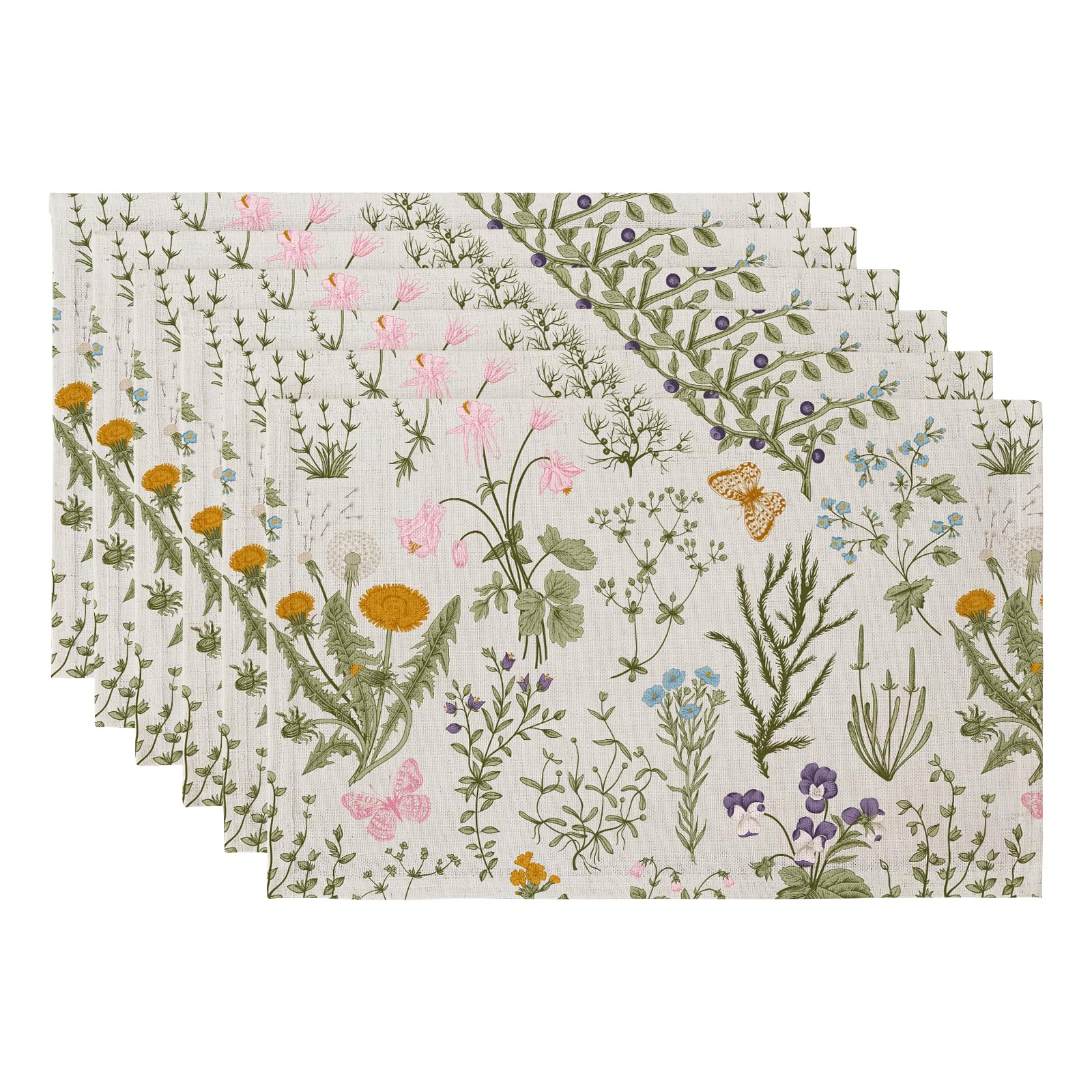QIYI Boho Placemats Set of 6, 12x18 Inch Linen Fabric Place Mats for Kitchen Dinning, Farmhouse Rustic Floral Cloth Table Mats, Washable Placemat|Kitchen & Dining