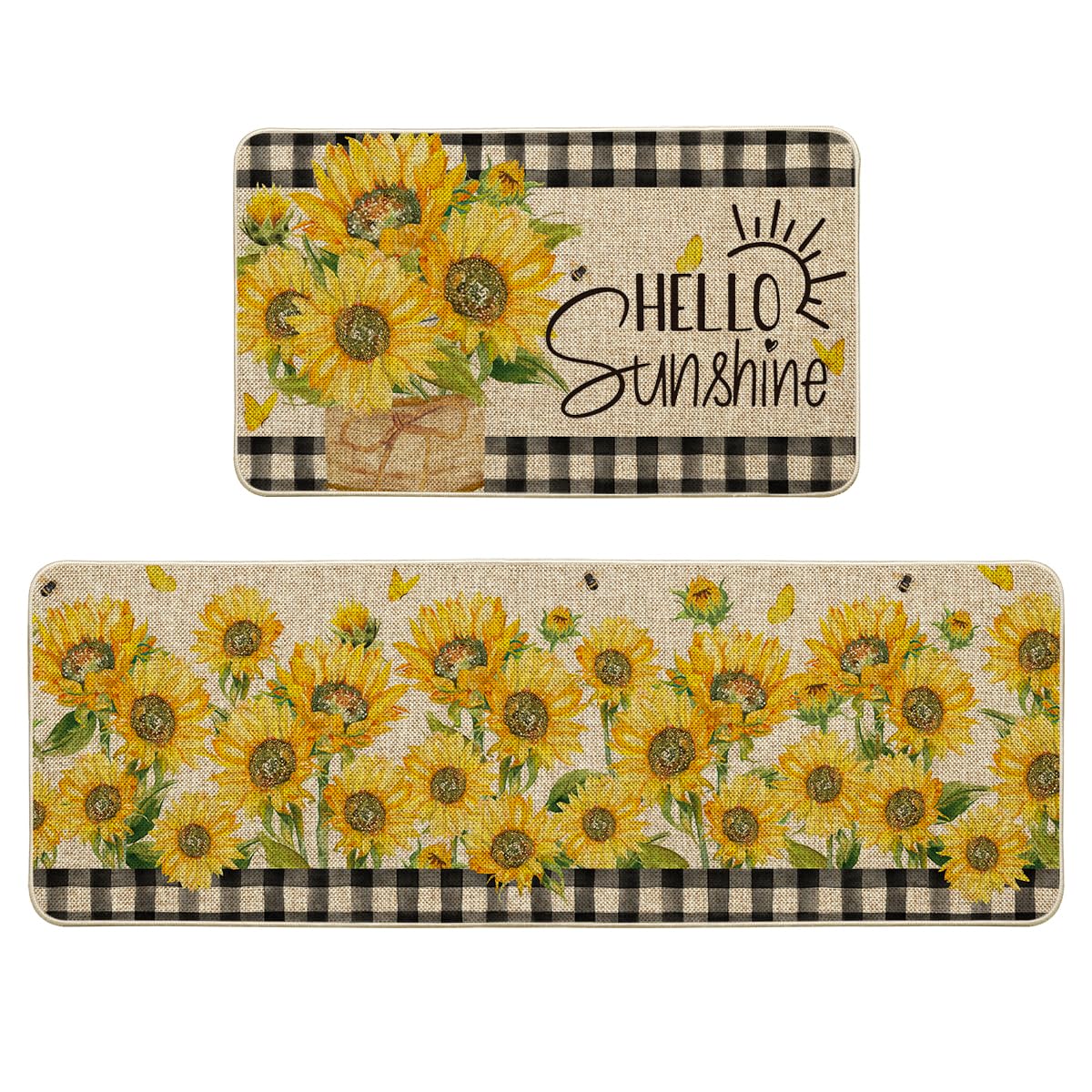 Artoid Mode Buffalo Plaid Sunflower Summer Kitchen Mats Set of 2, Hello Sunshine Spring Home Decor Low-Profile Kitchen Rugs for Floor - 17x29 and|Kitchen & Dining
