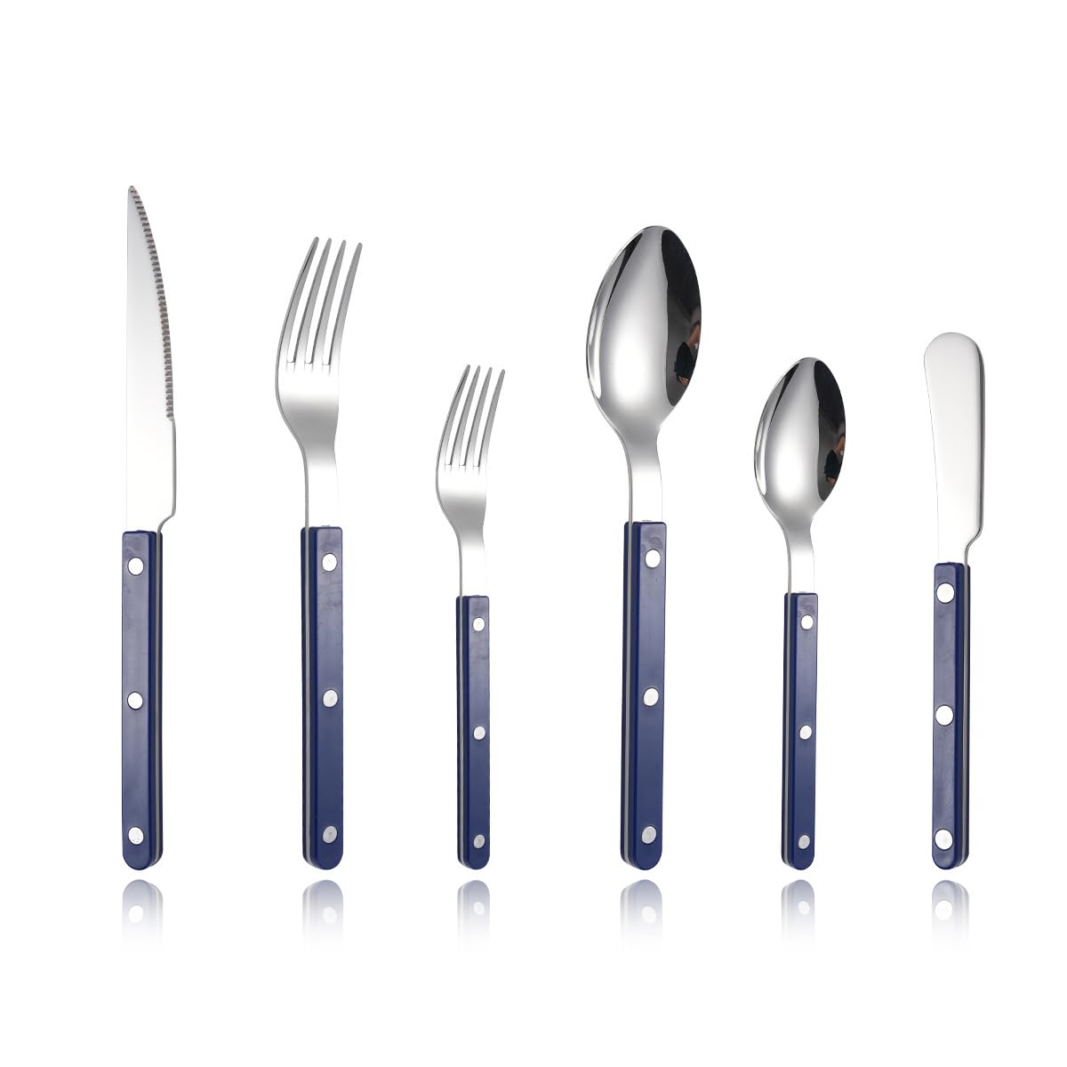 Rivet ABS Faux Wood Handle Silverware Set - 6-Piece Stainless Steel Flatware with Steak Knife, Fork, Spoon, Teaspoon, Dessert Fork and Butter Knife -|Kitchen & Dining
