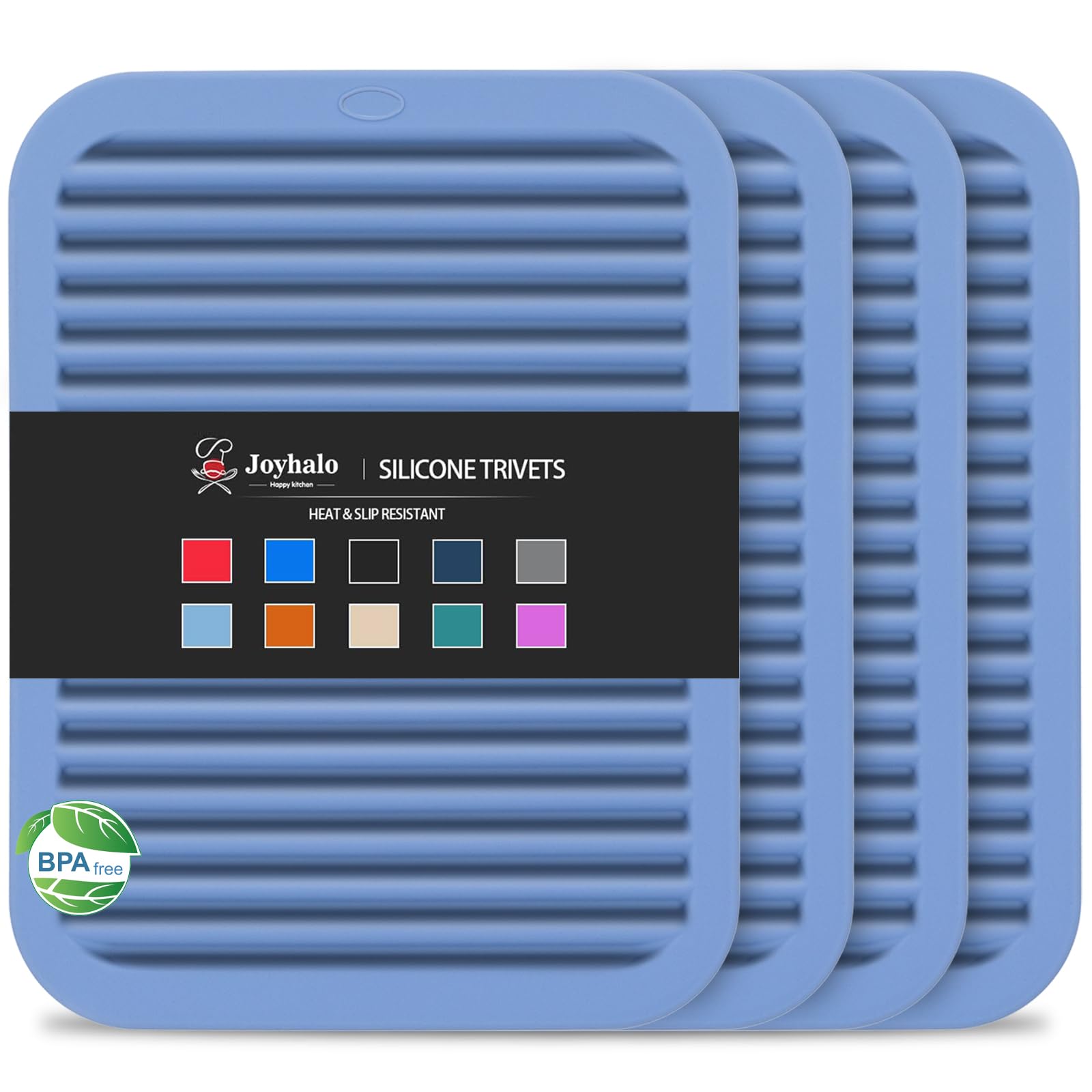 Joyhalo 4 Pack Silicone Trivets for Hot Pots and Pans,480℉ Heat Resistant Trivets for Hot Dishes,Hot Pads for Countertop,Kitchen Potholders,Blue|Kitchen & Dining