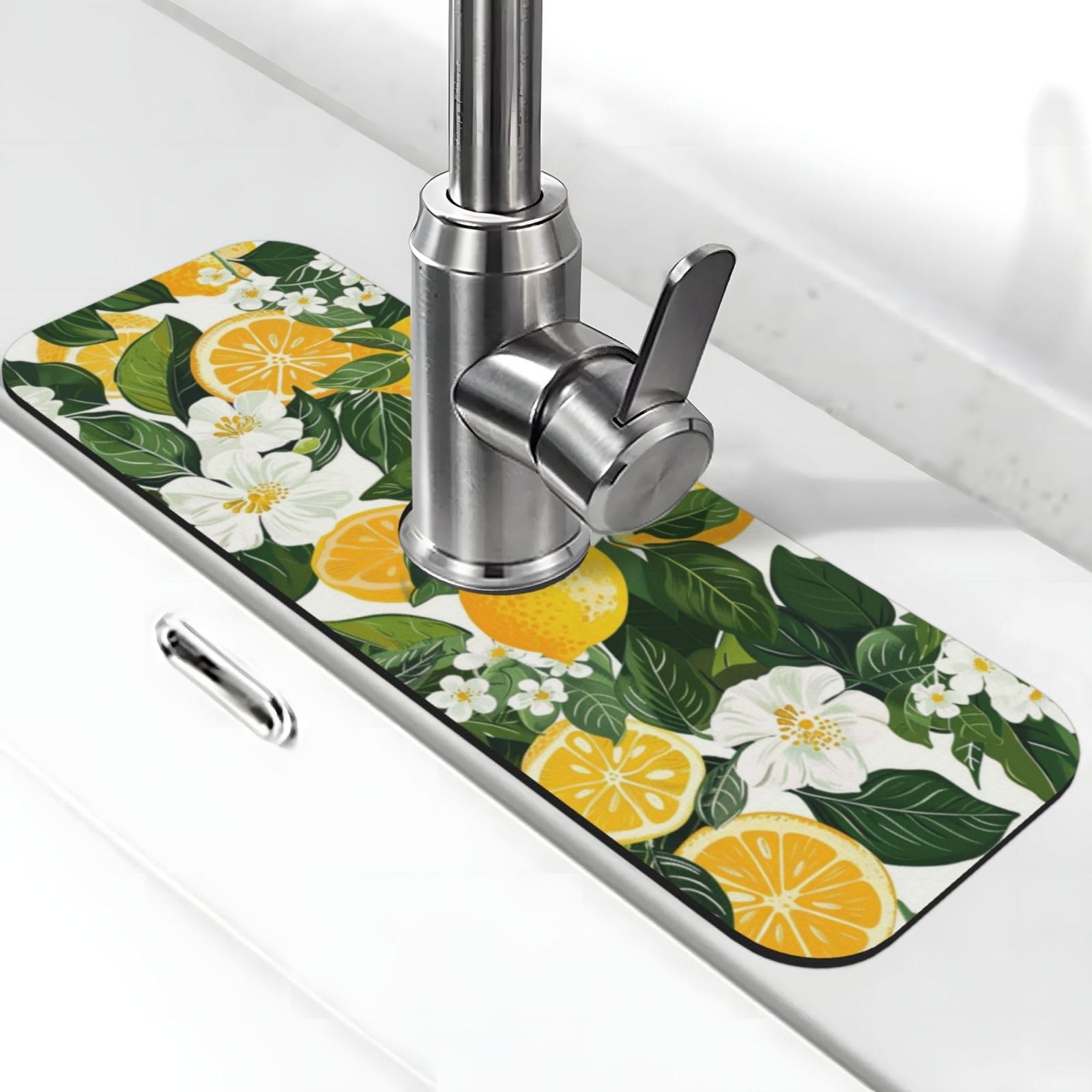 Faucet Draining Mat For Kitchen Sink, Yellow Lemons Green Leaves Diatom Mud Absorbent Drain Pad For Bathroom Kitchen Sink Splash Guard Drying Mat|Kitchen & Dining