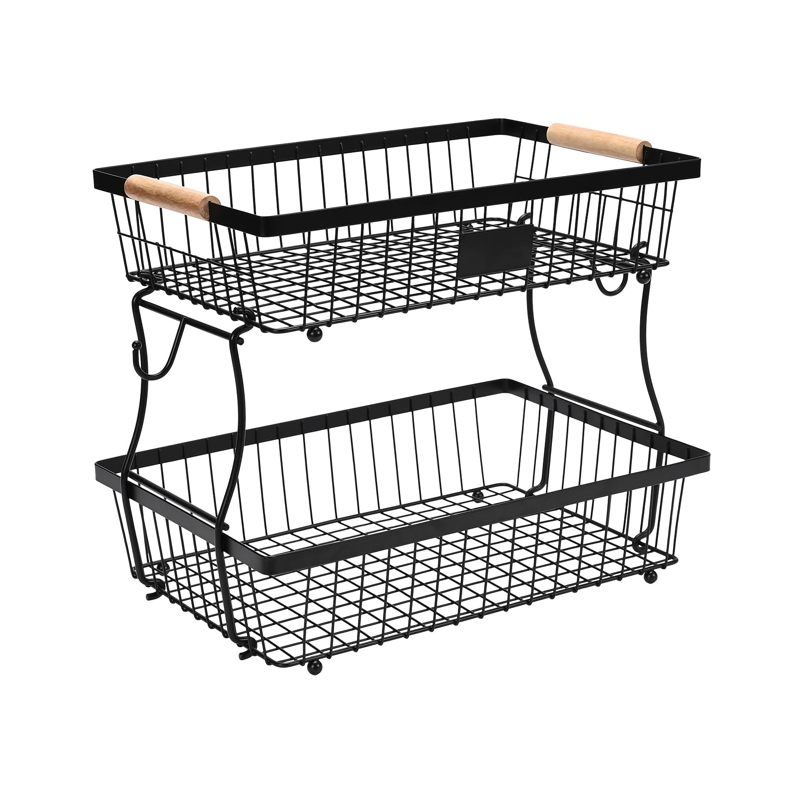 Lawhood-Mijin Fruit Basket Bowl 2 Tier Detachable with 2 Banana Hangers, Fruit Stand Holder for Kitchen Countertop, Metal Wire Vegetable Storage|Kitchen & Dining