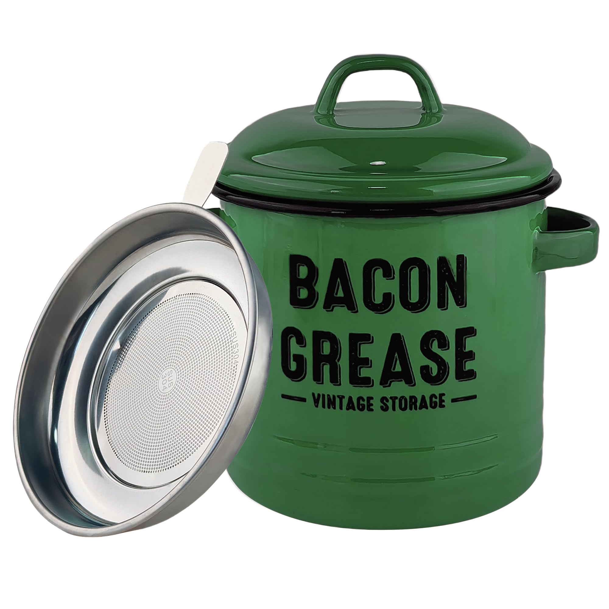 YOKODU 42oz Bacon Grease Container with Strainer,Enamel Ceramic Bacon Fat Can for Grease Drippings and Storage Grease Saver Keeper for Reuse &|Kitchen & Dining