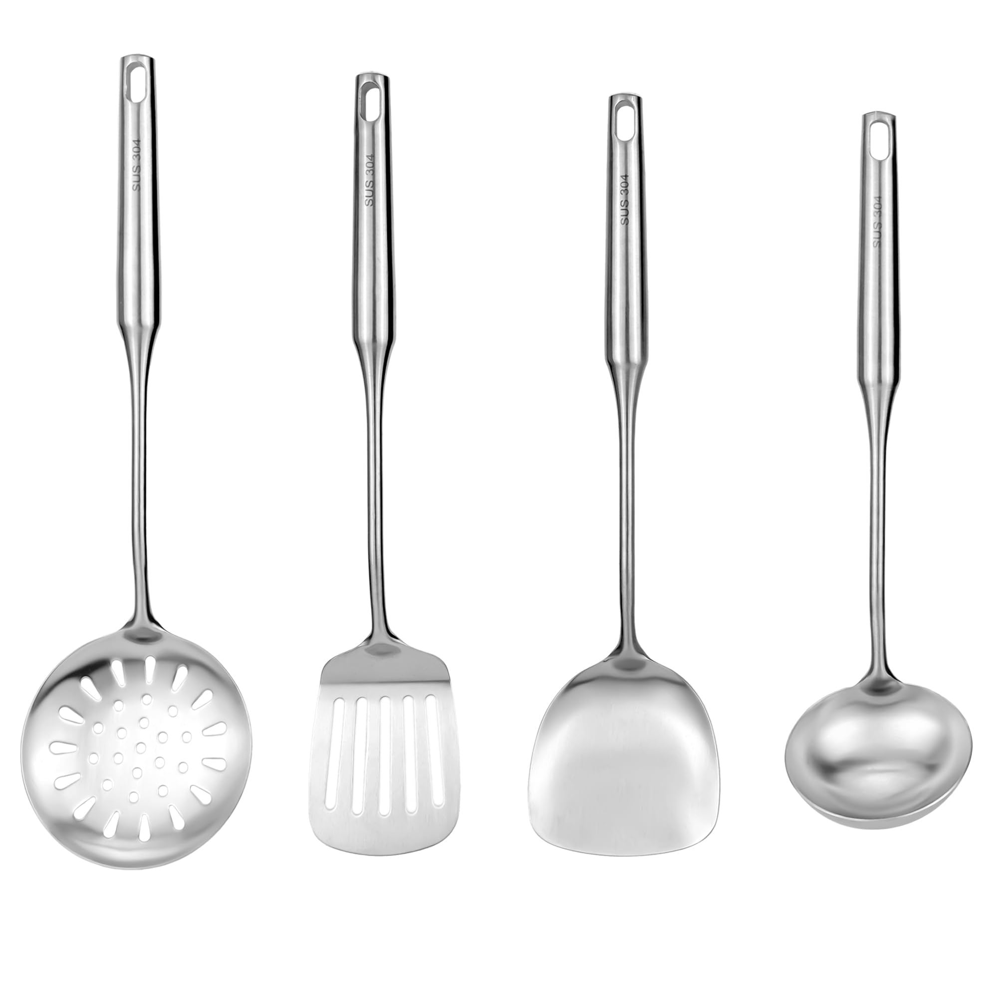18/8 Stainless Steel Kitchen Utensils Set, 4 PCS 15in Metal Cooking Utensil Gadgets Tools Set with Spatula, Deep Ladle, Skimmer, Slotted Spatula|Kitchen & Dining