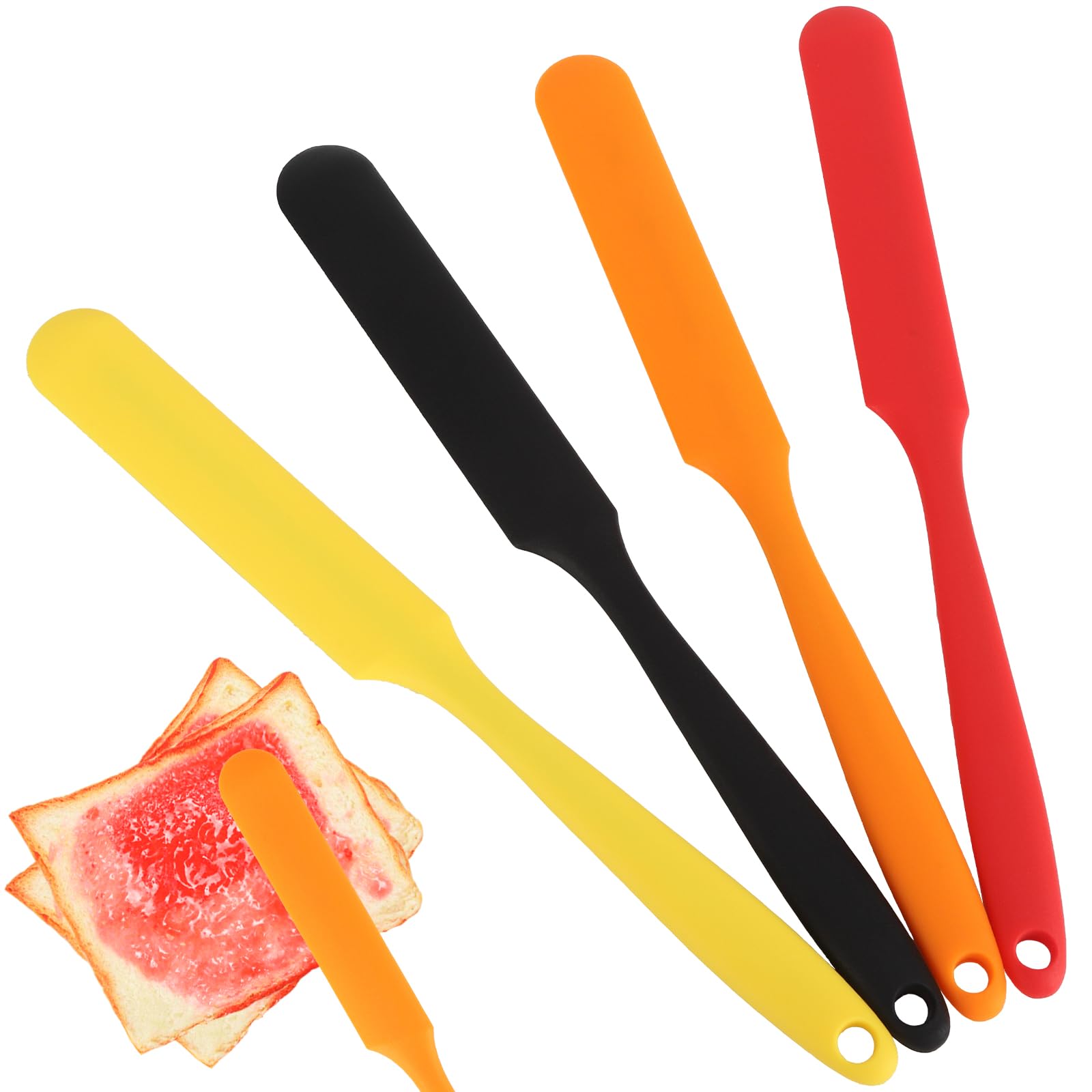 TEESSUE Silicone Jar Spatula Set of 4, Flexible Small Spurtle Spatula for Kitchen Use, Long Handle Skinny Narrow Blender Sparula for Frosting, Peanut|Kitchen & Dining
