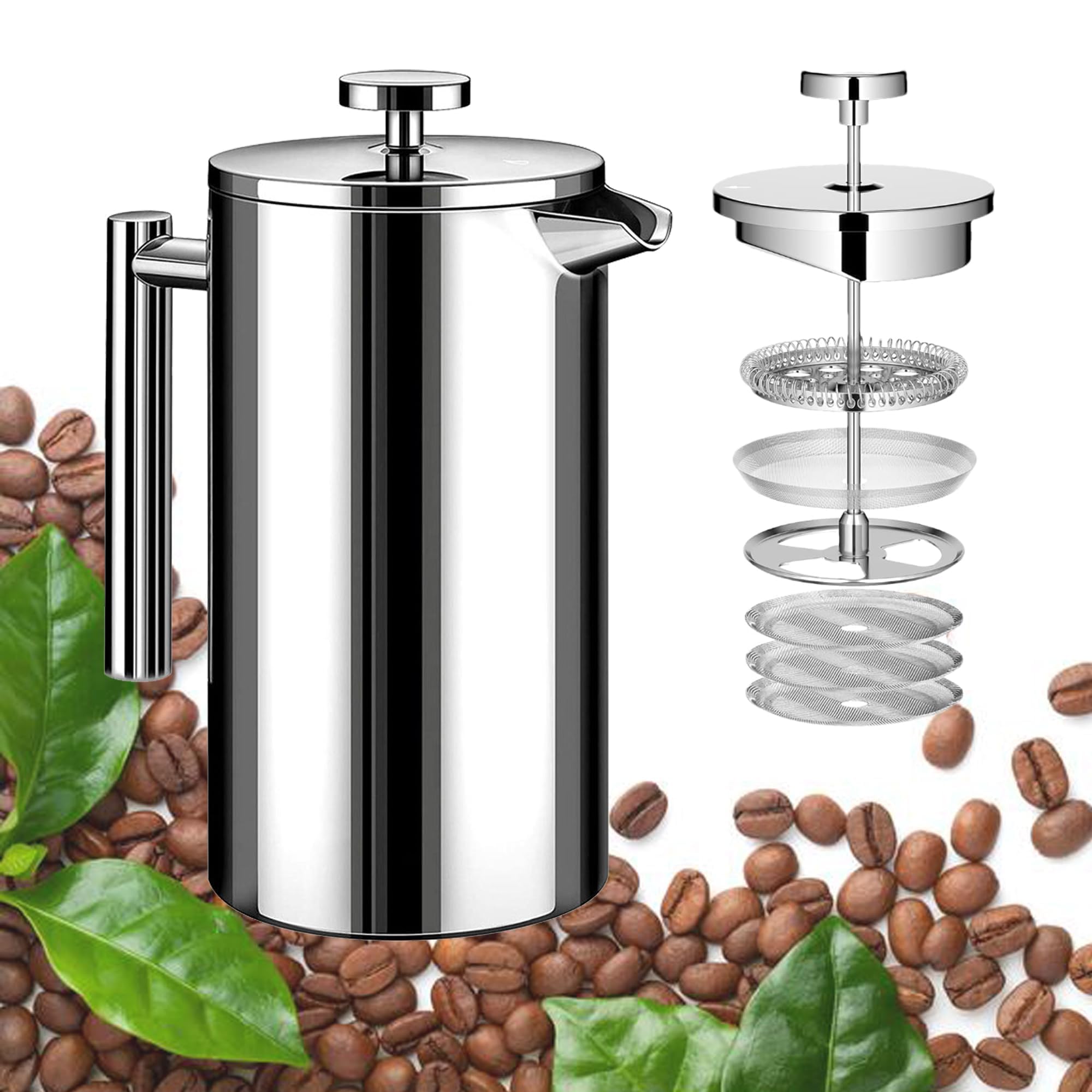 Small Stainless Steel French Press Coffee Maker 21oz(3 Cups), Double Wall Insulated for Hot& Cold Brew, Compact Coffee& Tea Press for Camping, Office,|Kitchen & Dining