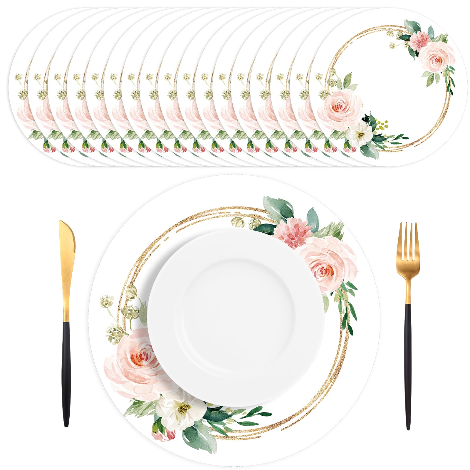 SMUAENSS Paper Placemats Disposable 50 Pack Pink Floral Placemats 13.4 Inch Rose Floral Place Mats Round Spring Summer Table Mats for Home Kitchen|Kitchen & Dining
