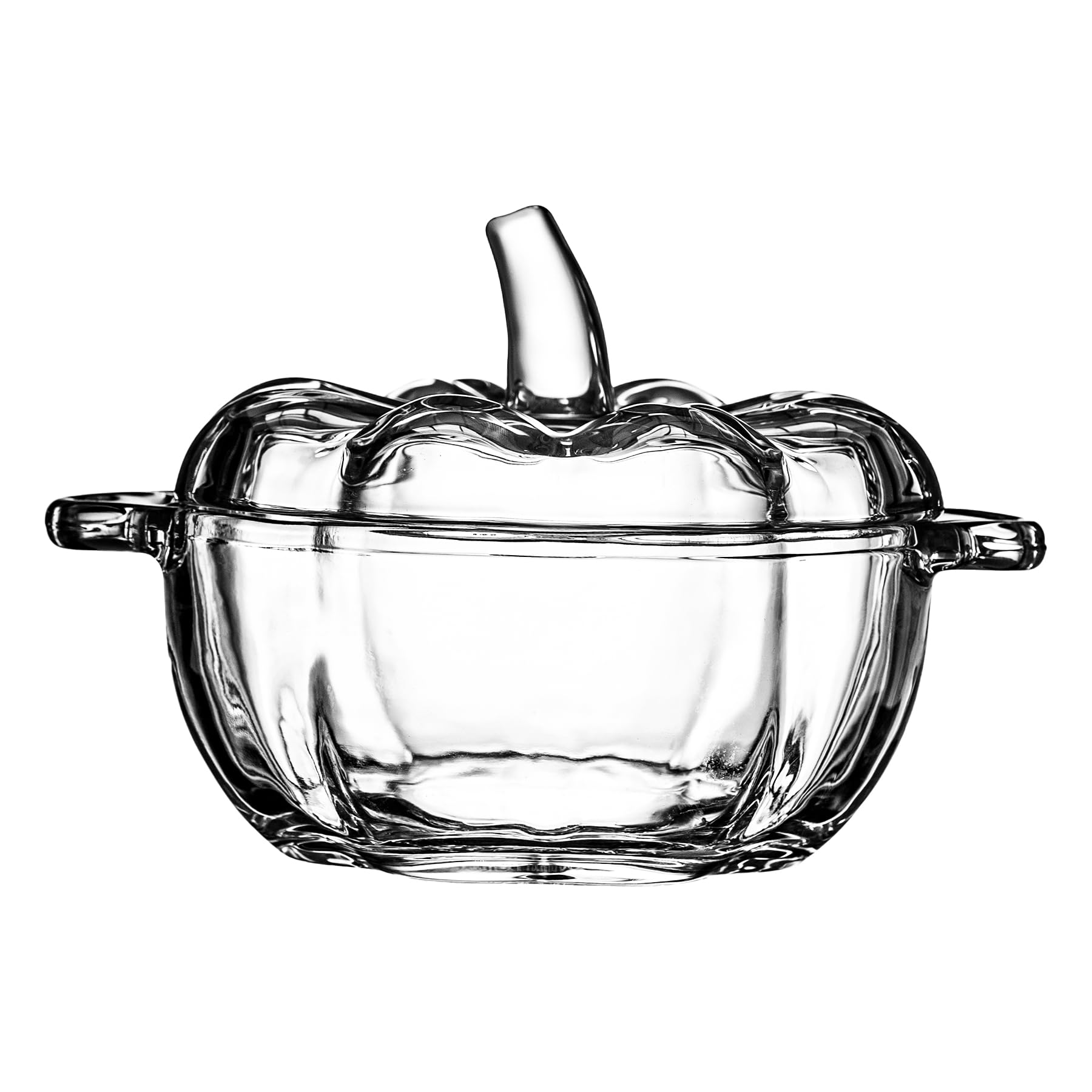 binsakao Small Glass Candy Dish with Lid - 16.7 oz Soup Bowls with Handle - Pumpkin Bowl for Holiday Party - Microwave Dishwasher Safe|Kitchen & Dining