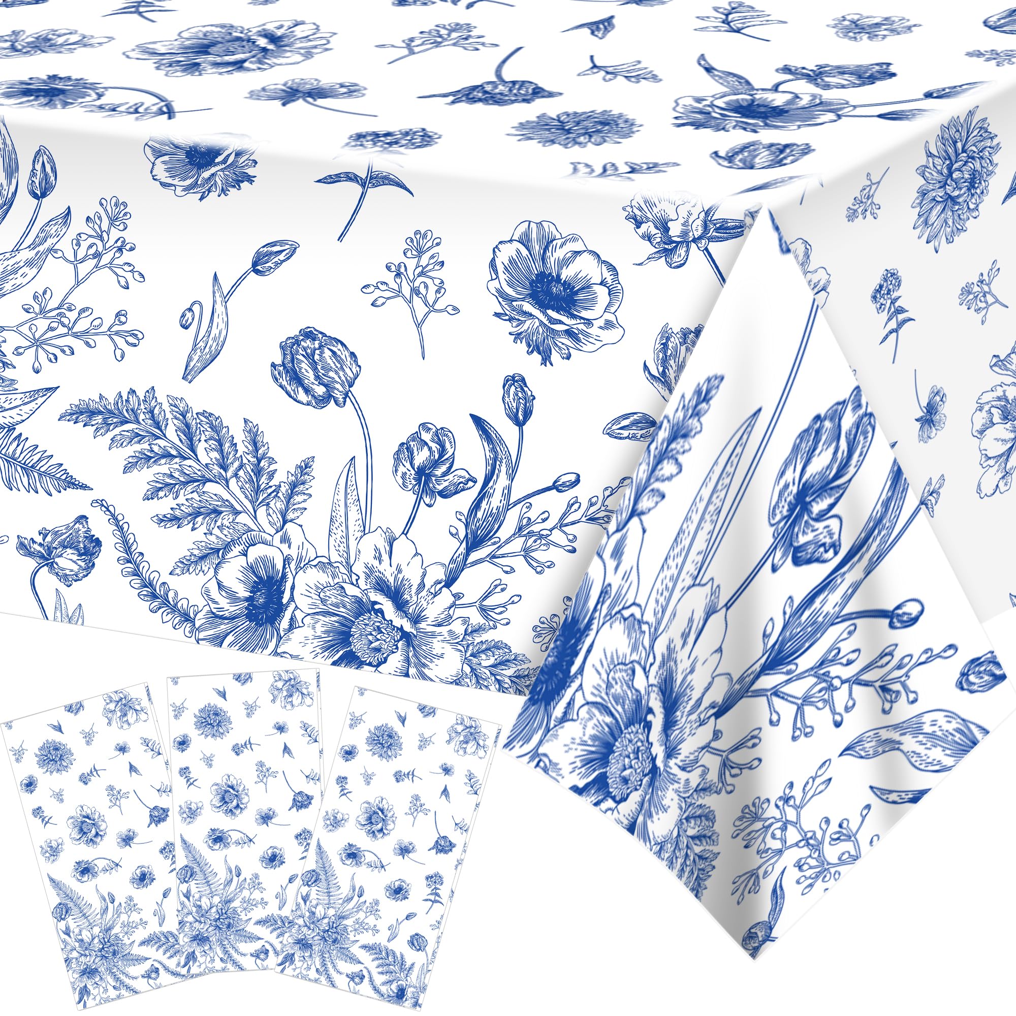 3 Pcs Blue Floral Party Tablecloth, Blue and White Floral Tablecovers Vintage Birthday Party Decorations Blue White Porcelain Flower Rectangle|Kitchen & Dining