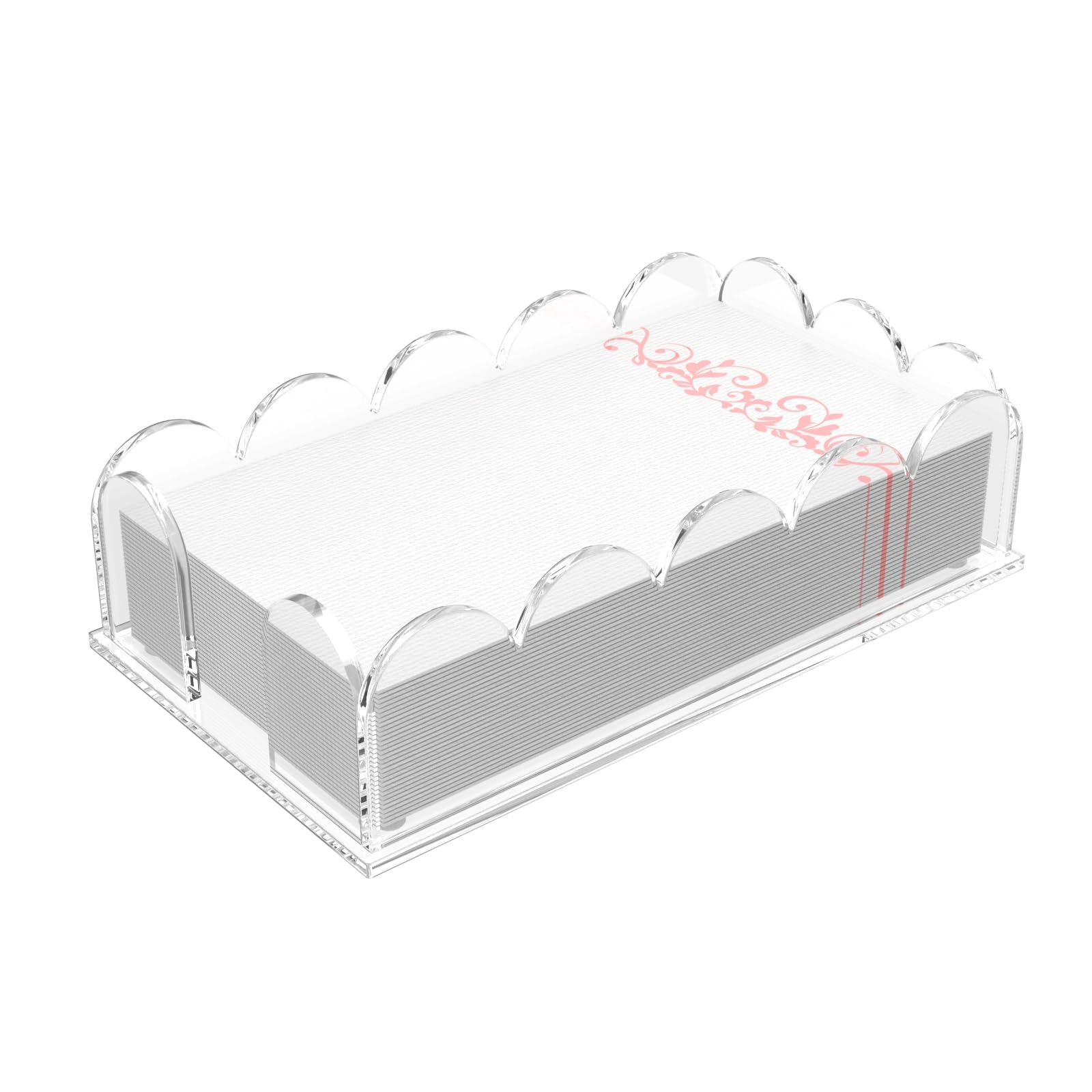 YAGELI Clear Acrylic Napkin Holder – Elegant Scalloped Tray for Bathroom, Kitchen, Dining Room – Flat Guest Towel & Disposable Paper Holder for|Kitchen & Dining