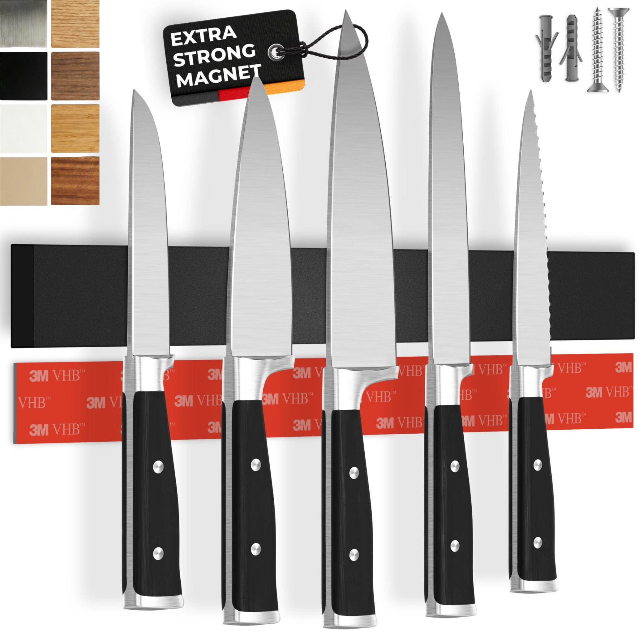CUCINO Magnetic Knife Holder for Wall 16" No Drilling incl. Self Adhesive Tape - Extra strong Knife Holder - Awarded Knife Magnetic Strip - Made of|Kitchen & Dining