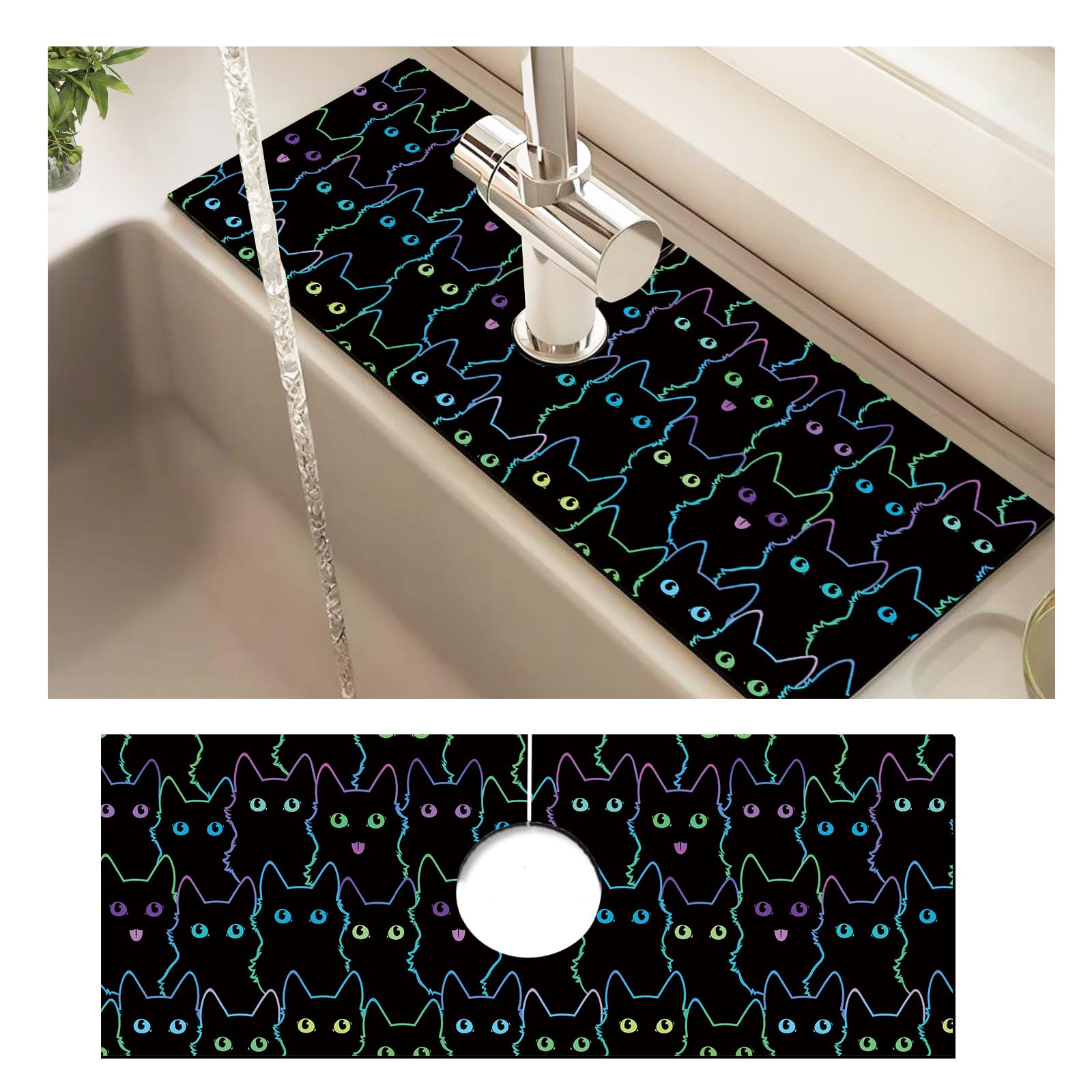 BSADKJFQO Absorbent Splash Guard Mat for Kitchen Sink, 15×5.5 Inch Cute Fast Drying Drip Catcher Behind Faucet Mat, Non-Slip, Washable Sink Mat|Kitchen & Dining