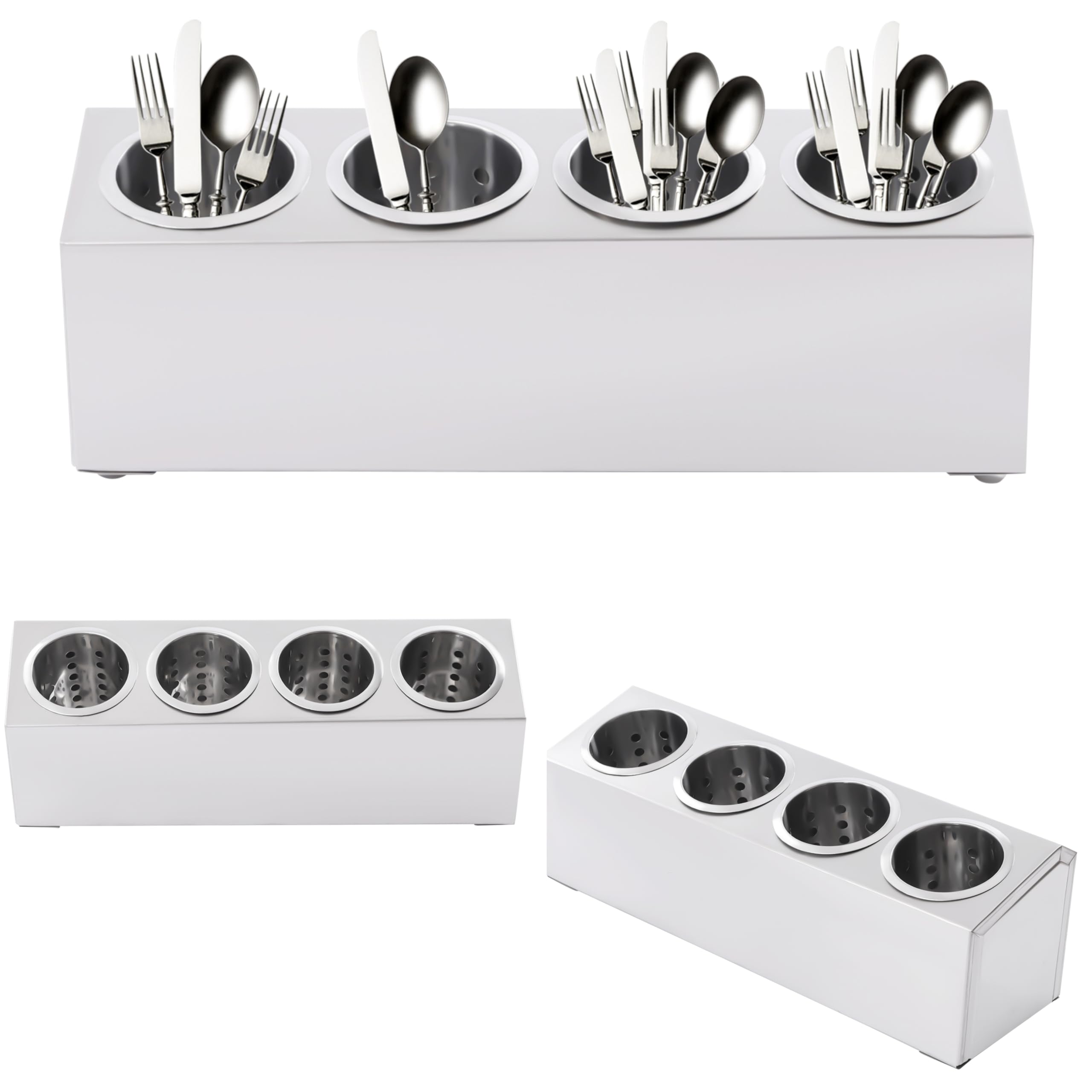 4 Compartment Utensil Dispenser Stainless Caddy Cutlery Silverware Organizer, Flatware Holder Forks Spoons Knives Dispenser for Restaurant Party|Kitchen & Dining