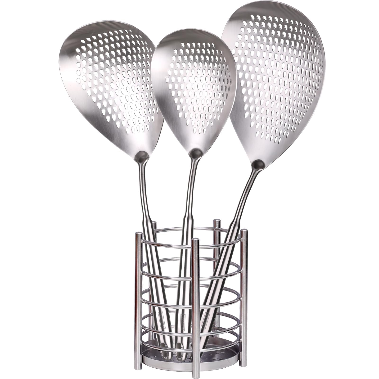 MARTE Skimmer Slotted Spoon Set of 4 - Kitchen Spaghetti Strainer Tool - Spider Strainer Skimmer Ladle Spoon with Holder for Cooking and Frying Food,|Kitchen & Dining