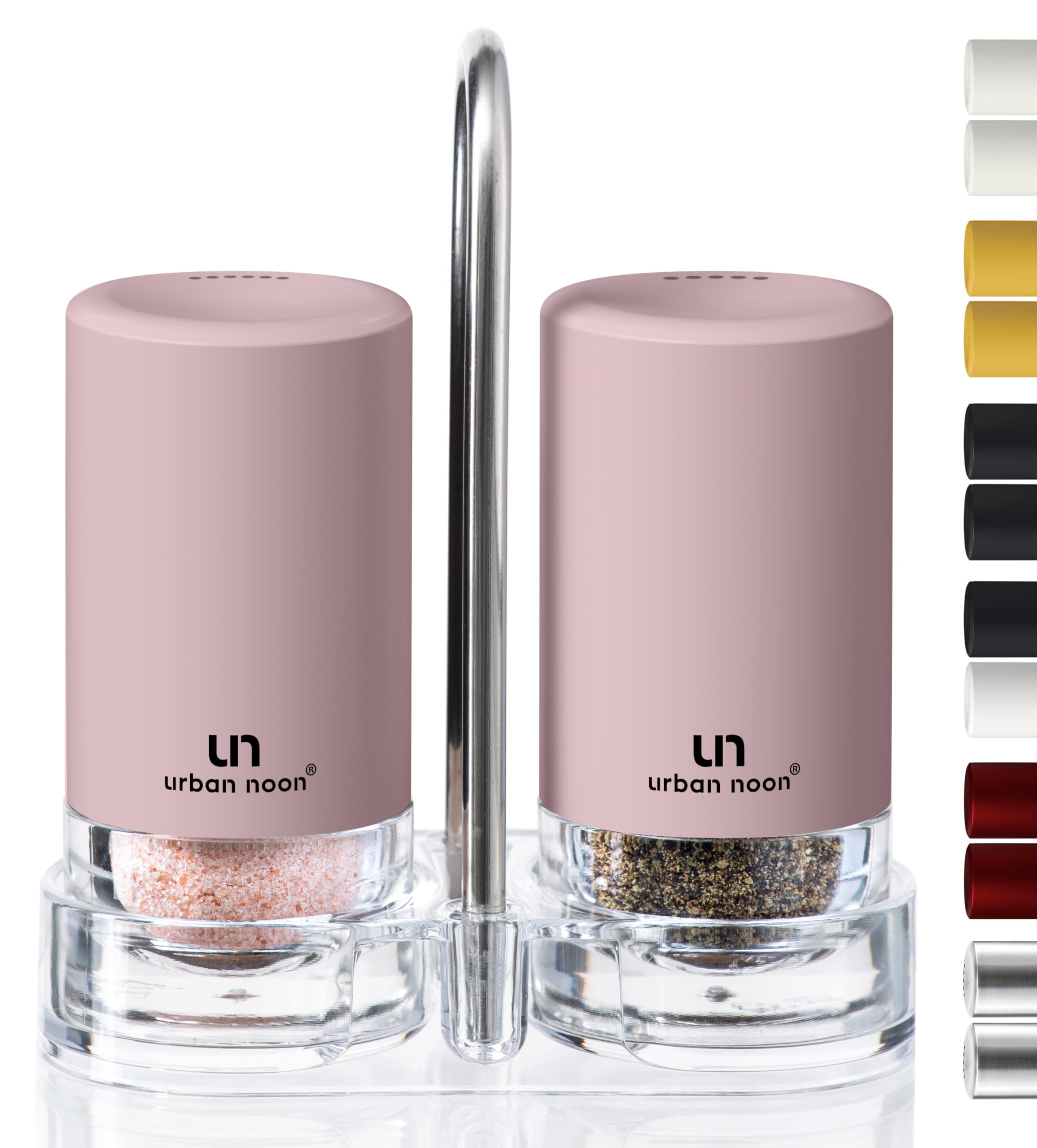 Signature Petal Pink Salt and Pepper Shakers with Holder - Elegant Stainless Steel Salt Shaker and Pepper Shaker Set with Acrylic Holder for Kitchen|Kitchen & Dining