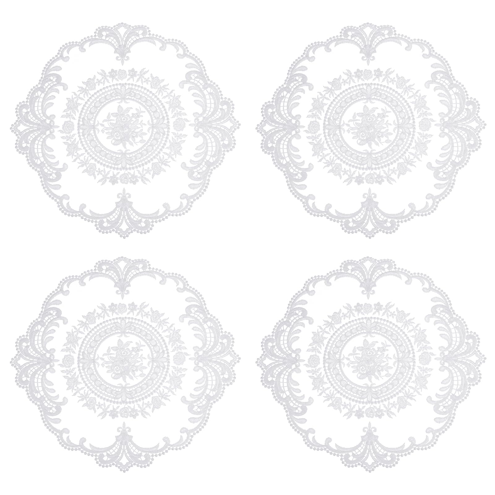 uxcell 4Pcs Retro Lace Placemats, French Crochet Doilies Round Embroidered Hollow Cup Vase Table Mat for Dining Table Kitchen Party 11.02x11.02inch,|Kitchen & Dining