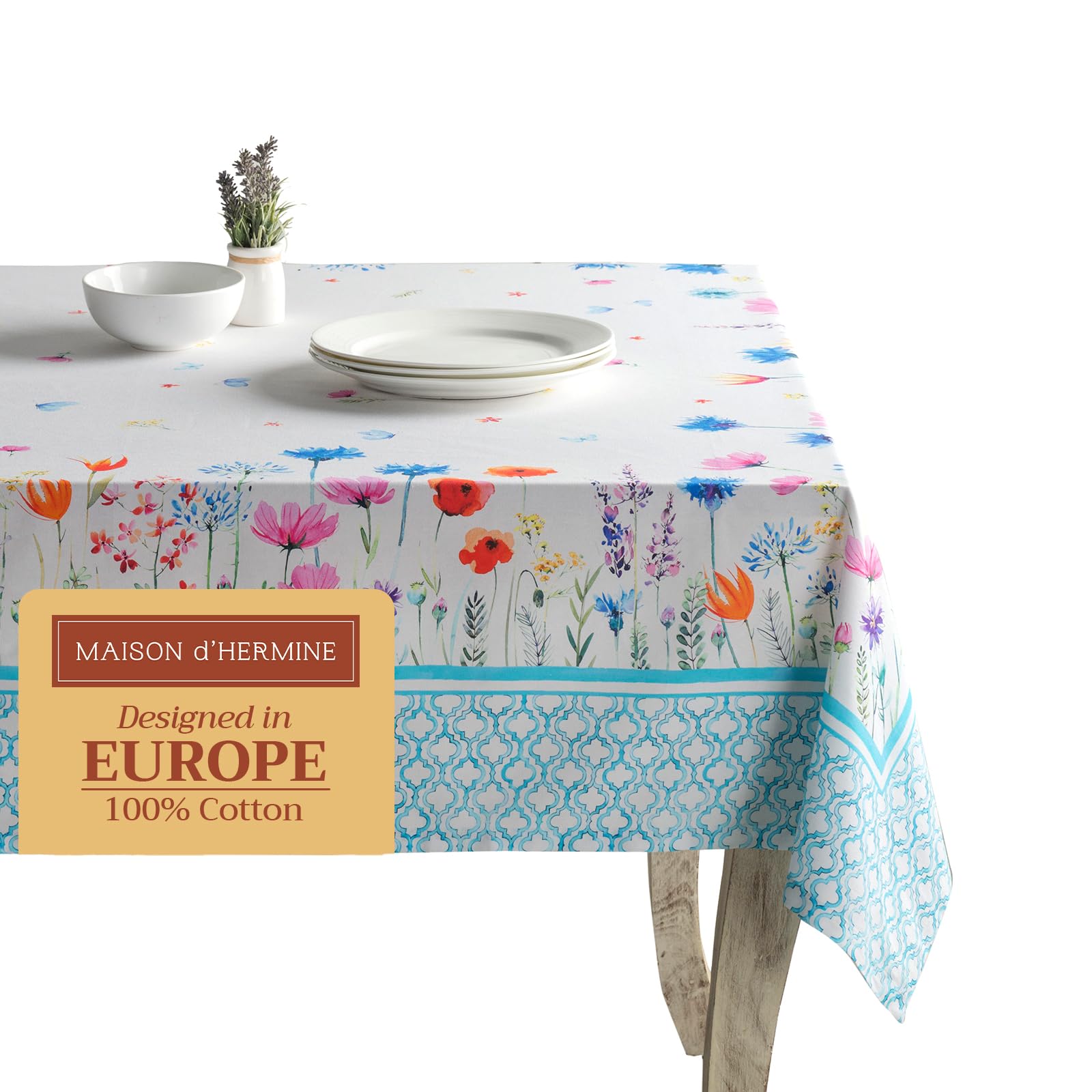 Maison d' Hermine Table Cloth Rectangle Table 100% Cotton 54 x 72 Inches Tablecloth Reusable Decorative for Dining Room, Farmhouse, Home, Party,|Kitchen & Dining