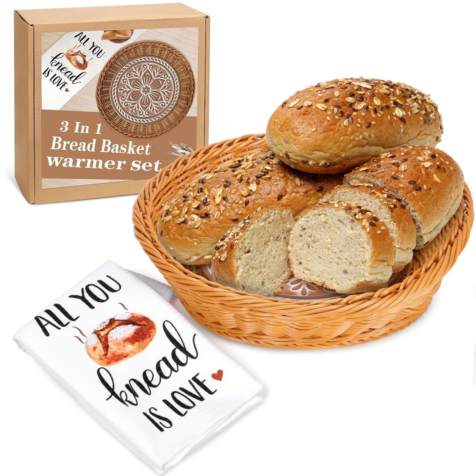 Huray Rayho Bread Basket Warmer Stone -Terracotta Bread Baskets for Serving Muffin and Cornbread Basket Housewarming Gift, Baker's Hostess Gift,Mom|Kitchen & Dining