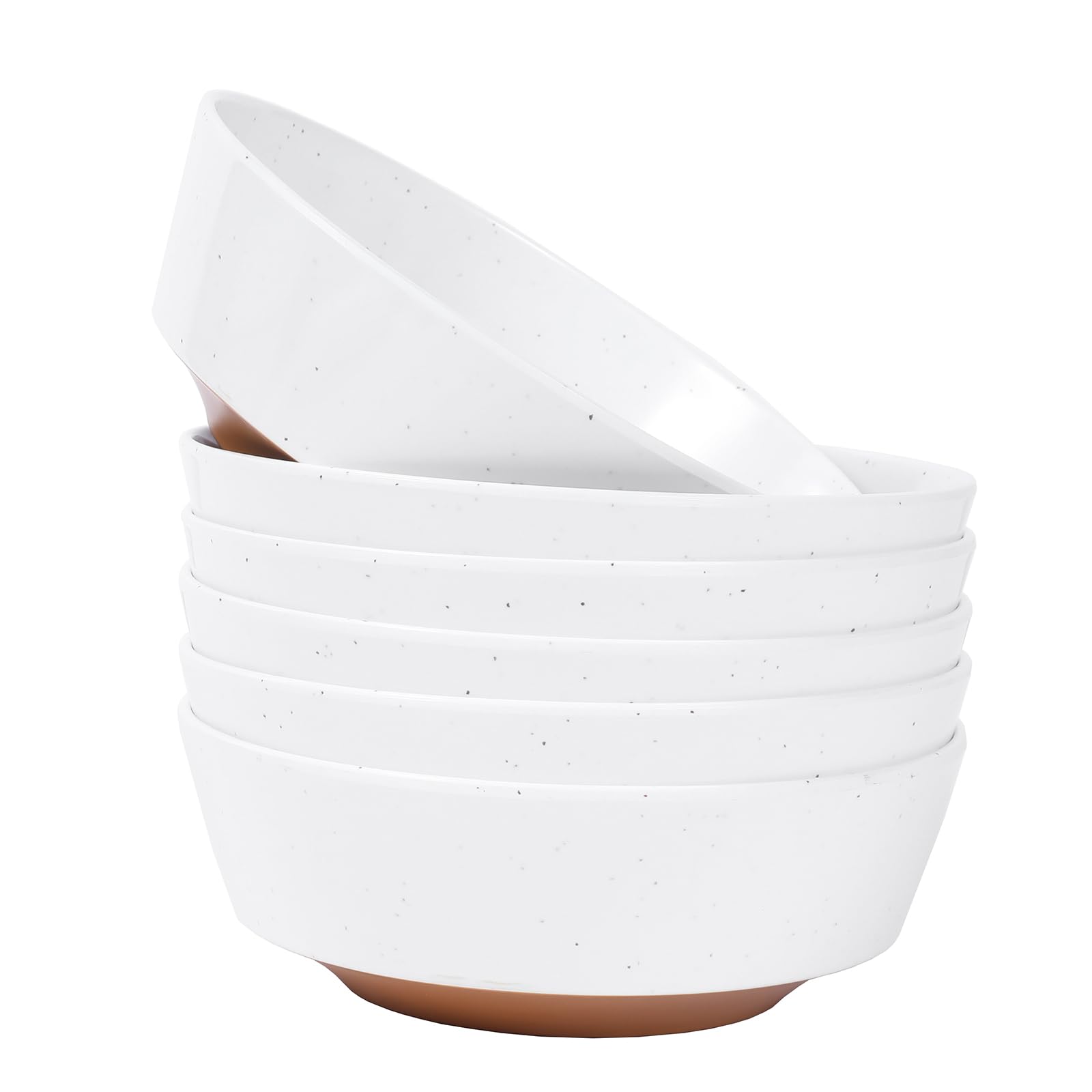 Webbylee 6-inch Melamine Bowls set of 6-20-ounce Dinnerware Cereal Bowls for Soup, Salad & Dessert | Dishwasher Safe & Space Saving (White/Brown)|Kitchen & Dining
