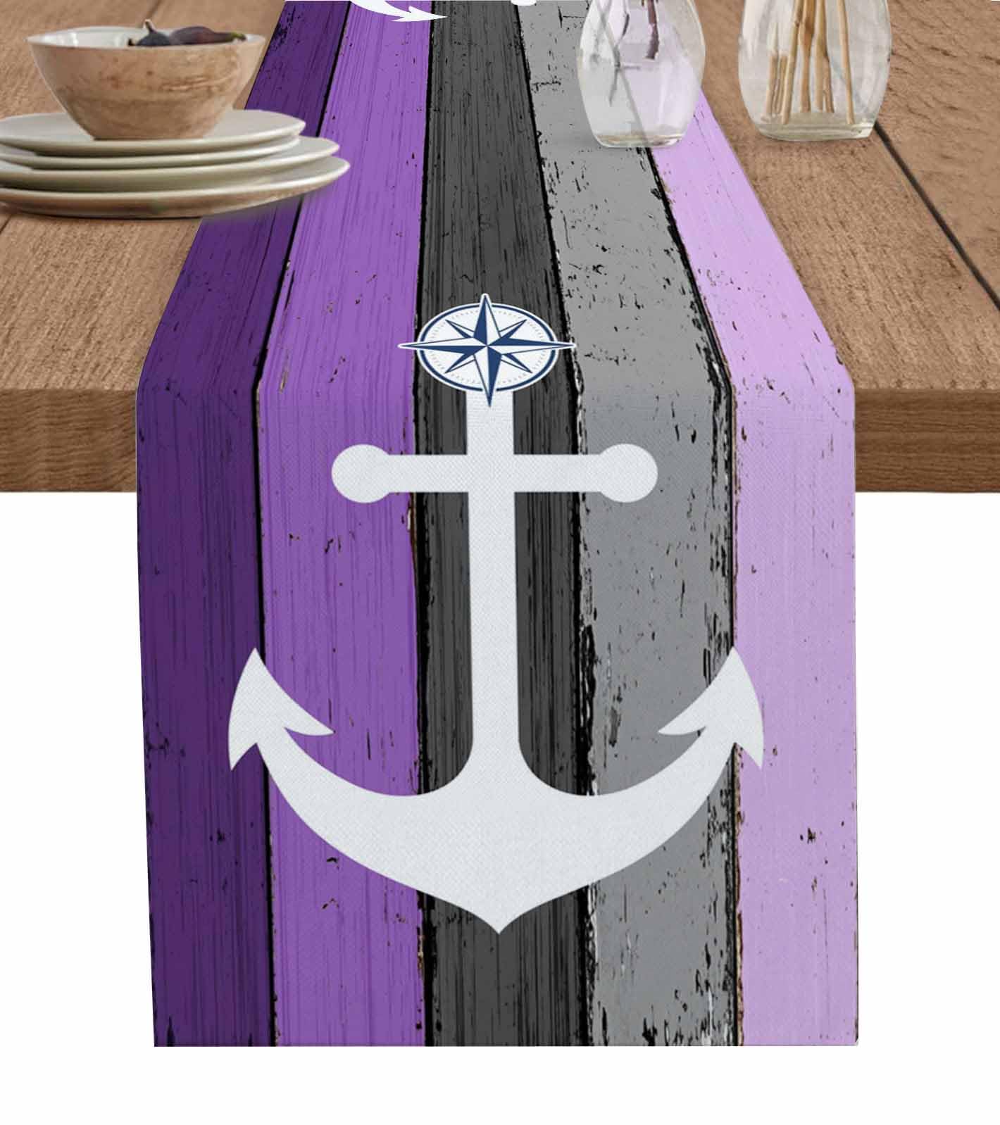 Navigation Anchor Compass Table Runner 13x60inches Long,Kitchen Dining Tablerunners Retro Purple Wood Board Table Runners for Indoor/Outdoor Home|Kitchen & Dining