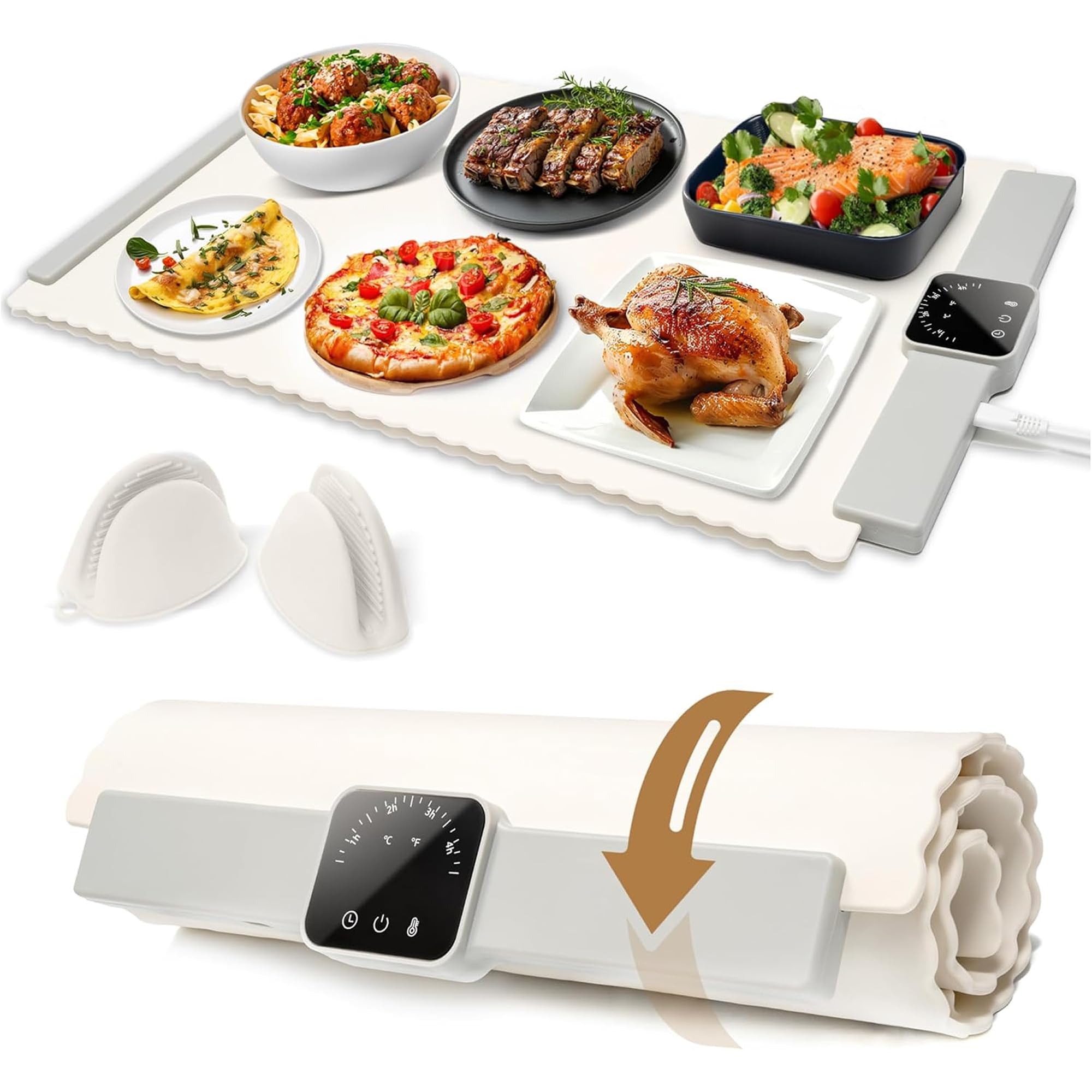 Warming Mat for Food – 24x16” Foldable Buffet Tray with 5 Temperature Settings & Auto Timer – Electric Silicone Plate Warmer for Parties, Catering,|Kitchen & Dining