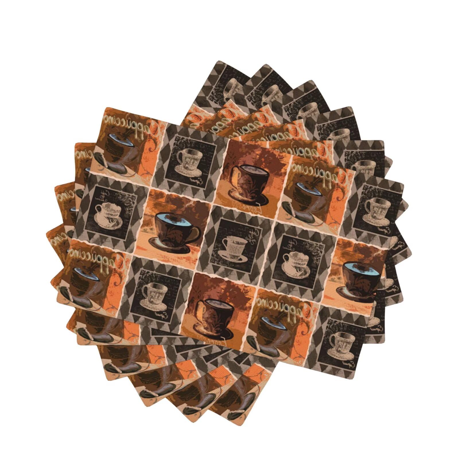 Vintage Coffee Kitchen Table Placemats Set of 6 Espresso Latte Cappuccino Coffee Lovers Indoor Outdoor Table Placemat for Home Desktop Holiday Banquet|Kitchen & Dining