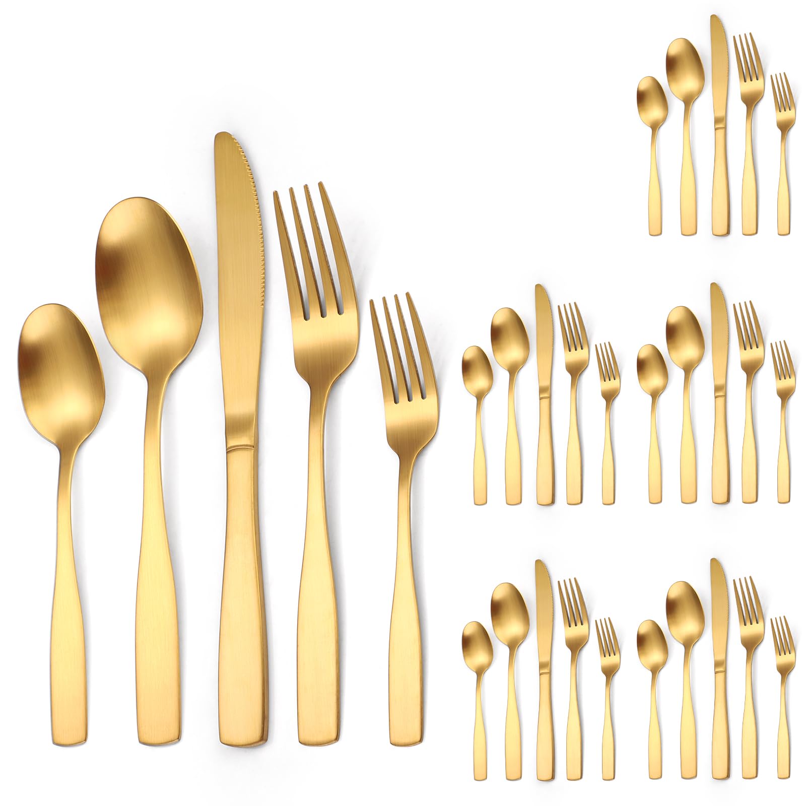 A·HOUSEWARE Gold Matte Cutlery Stainless Steel Silverware Satin Finish Flatware Set for 6 Tableware 30 Pieces Kitchen Eating Utensils for Home and|Kitchen & Dining